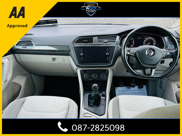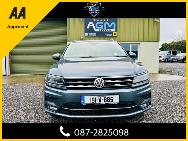 2019 Volkswagen Tiguan Highline 7 Seater Welcome to AGM Autos ltd. With over 12 years experience in the motor trade you can be assured you have chosen the right dealership to purchase your new vehicle from. Located just 5 minutes from Carlow town centre. We are an AA Approved dealer - all cars come with 1 year roadside rescue & 101 point safety check completed Viewing by appointment only We price check the market on a daily basis to ensure you get the best value nationwide. Finance packages available to suit you, tailor made for your budget and needs. We are located just 5 mins from the motorway Naas 40 mins Dublin - red cow 55 mins Wexford 1 hr Cork 2 hrs Galway 2 hrs 30 mins All cars come fully serviced and health checked with a valid Nct and our own warranty to ensure the highest standards in the industry and complete peace of mind. Ask us about the extended nationwide warranty that may also be available for up to 24 months with unlimited mileage. All trade-ins considered. We welcome enquiries through all means including calls , texts , emails and WhatsApp. Follow us on instagram @agmautos and like us on facebook/TikTok to be the first to see our latest cars in to stock. You will also find us on carzone, carsireland and donedeal, and a full list of our stock on our website www.agmautos.ie Our website is updated every 24 hours so check back soon for similar stock arriving. HPI Clear All vehicles receive a theft and write off and milage check to keep your mind at ease ensuring you have complete confidence in your new vehicle. All our customers are given the time and attention needed to choose the right vehicle for them and their needs. To ensure you have the best experience with us we operate on a Viewing by Appointment Only basis. We look forward to your enquiry. Central Locking, Electric Windows, Airbag, Cruise Control, Fog Lamps, Privacy Glass, Centre Armrest, Multi-function steering wheel, Roof Rails, Satellite Navigation, Traction Control, Metallic Paint, Parking Sensors, Bluetooth, EBD, Isofix, Apple Car Play, Android Auto, Active Safety Braking / City Brake / Collision Alert, Stop/Start Button, External Devices Connectivity, Cup holders, Remote boot/hatch/rear door release, Stability control