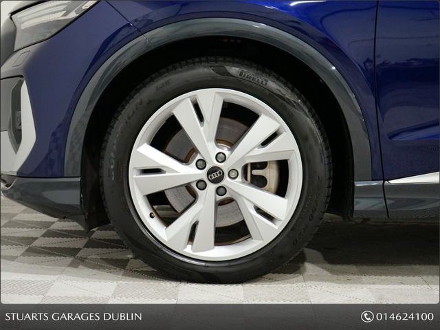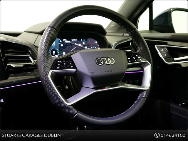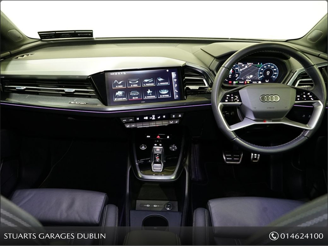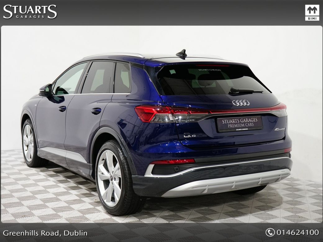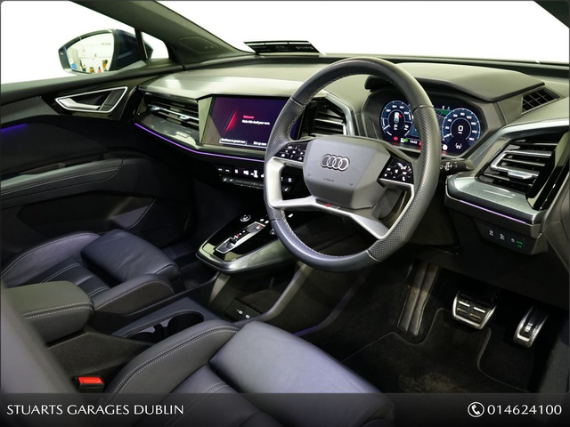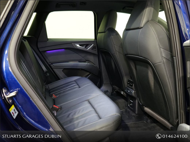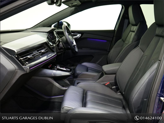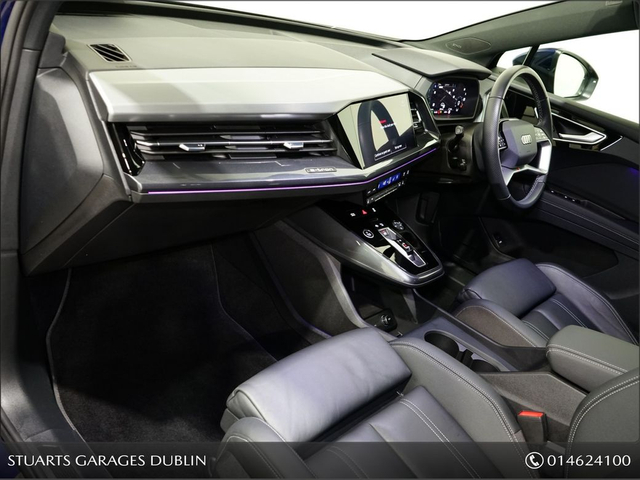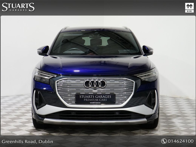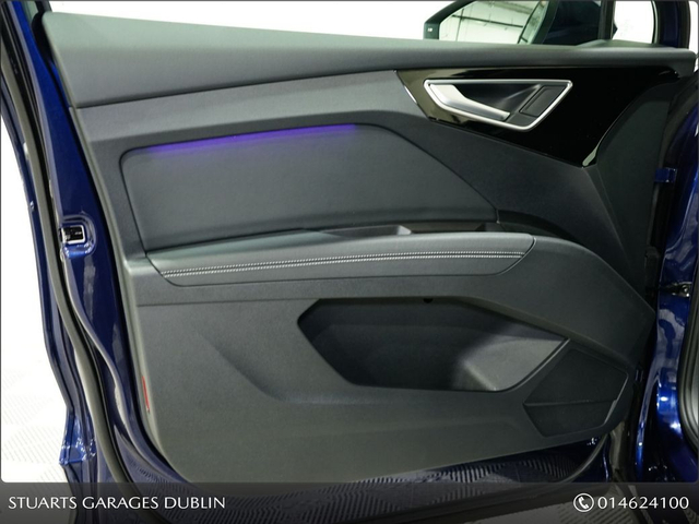 S/LINE 45 – BIGGER BATTERY • Q4 E-TRON SLINE SUV • NAVARRA BLUE METALLIC • FULL BLACK LEATHER SPORT SEATS • AMBIENT LIGHTING • KEYLESS ENTRY • 20” ALLOYS • HEATED SEATS • REVERSING CAMERAPOWERED BOOT • CRUISE CONTROL • HEATED FRONT SEATS • FOLDING MIRRORS • FRONT AND REAR PARKING SENSORS • APPLE CARPLAY and ANDROID AUTO • At Stuarts Garages, we specialise in High Quality Premium Pre-Owned Cars. • This particular Q4 E-Tron comes with the balance of manufacturer’s warranty • 12 months AA Roadside Assist. • Attractive finance options are available upon request. • Call today for further information or to arrange a test drive. • Stuart’s Garages, Trading since 1946