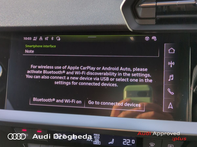 Audi A3 A3 S Line 40 Tfsi E • 3 Spoke Sports Steering Wheel • USB charging ports • Audi Virtual Cockpit • Audi Lane Assist • USB • Full Service History • Multiple Airbags • LED Headlights • Immobilizer • Hill Hold Assist • Front and Rear Park Assist • Daytime Running Lights • Child Locks • Alarm • ABS • Satelitte Navigation • Privacy Glass • Onboard Computer • Front/Rear Floor Mats • Electric Windows • Electric Mirrors • Air Conditioning • Tinted Windows • S-Line Exterior Pack • Metallic Paint • Alloy Wheels • Audi Stop/Start • Audi Drive Select • Touchscreen Stereo