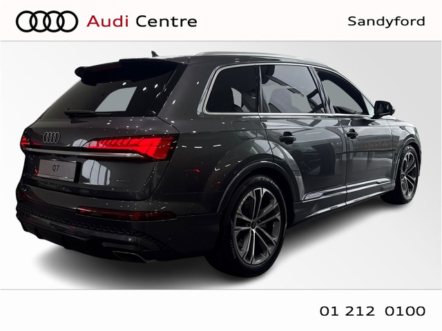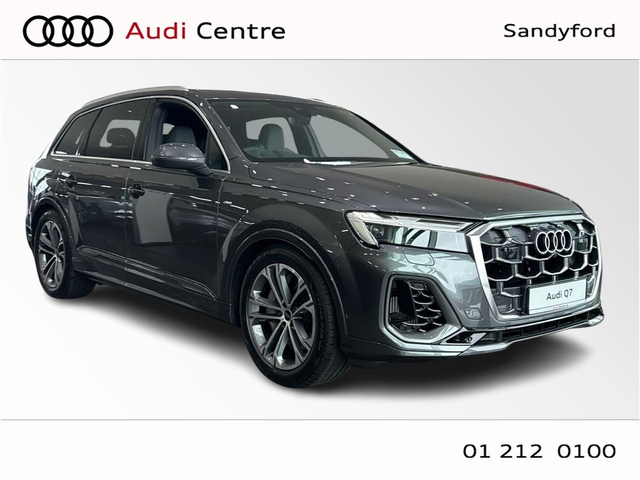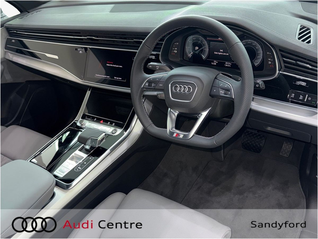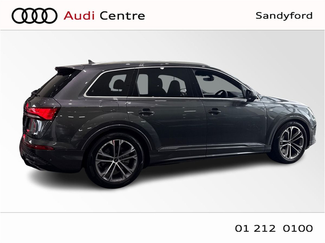 Audi Q7 55 TFSIE Q S LINE 290KW • Audi Sound System • Audi Drive Select • Adaptive Air Suspension • Cruise Control • Quattro Four Wheel Drive • 20"Alloys • High Gloss Pack • Metallic Paint • S-Line Body Styling • S-Line Exterior Pack • Sunroof • Ambient Lighting • Armrest • Automatic Air Conditioning • Door Sills with Aluminium Inlays • Electric Mirrors • Electric Windows • Front/Rear Floor Mats • Interior Mirror with Automatic Antiglare Action • 3 Spoke Sports Steering Wheel • Electrically Adjustable Seats • Headlining in Black Cloth • Heated Seats Front & Rear • Lumbar Support • Memory Function Driver seat • ABS • Alarm • Audi Matrix LED Headlights • Daytime Running Lights • Electronic Stability Programme (ESP) • ISO Fix Front Passenger and Rear Seat Preparation • Speed Limiter • LED Rear lights • Sport Suspension • Sport leather steering wheel, flat bottom with multifunction and shift paddles • 360° display • Assist package Drive and Park plus • Park assist plus • Park assist with parking system plus • Audi Connect • Audi Smartphone Interface • Audi Virtual Cockpit • Panoramic Glass Roof with Switchable • S Line Valcona Leather