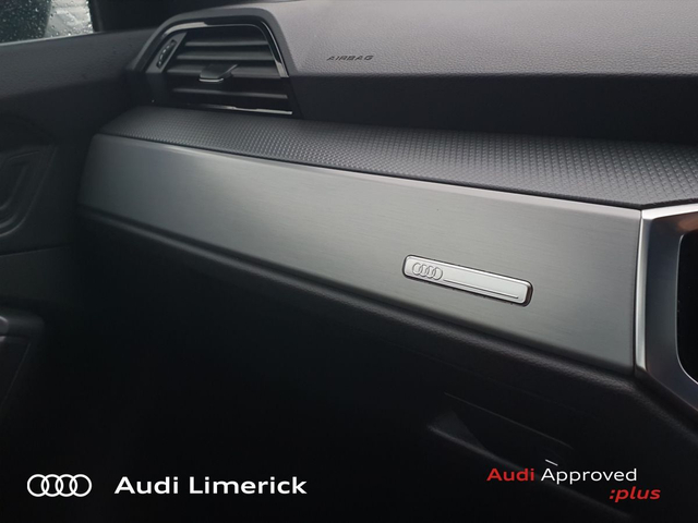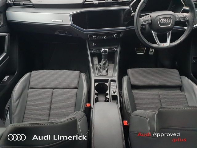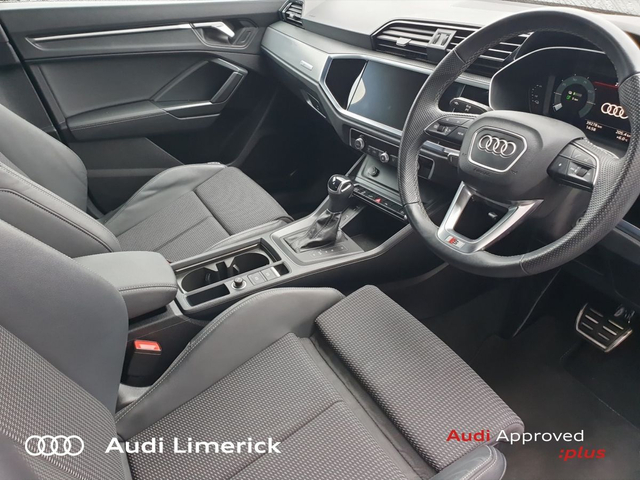 Audi Q3 45 TFSI E S Tronic S line • Audi Music Interface • Audi Sound System • Bluetooth Interface • Touchscreen Stereo • Audi Drive Select • Audi Stop/Start • Cruise Control • Power Assisted Steering • 18"Alloys • Black Styling Pack • Body Coloured Door Mirrors • High Gloss Pack • Metallic Paint • Spoiler • Air Conditioning • Armrest • Climate Control • Colour Driver Information system • Door Opening Illumination Lights • Dual Climate control • Electric Mirrors • Electric Windows • Front Footwell Illumination • Front/Rear Floor Mats • Illuminated Vanity Mirror • Multi-Function Steering Wheel • Split Fold Rear Seats • 3 Spoke Sports Steering Wheel • Lumbar Support • ABS • Active Lane Assist • Alarm • Anti Theft System • Auto Lights and Wipers • Child Locks • Daytime Running Lights • Deadlocks • Electronic Stability Programme (ESP) • Front and Rear Park Assist • Immobilizer • ISO Fix • LED Headlights • Light and Rain Sensor • Multiple Airbags • Power Boot Opening and Closing • Rear Park Assist • Remote Electric Tailgate Opening/Closing • Full Service History • Front and Rear Park Sensors • Voice control • Apple CarPlay • Audi Smartphone Interface • Audi Virtual Cockpit • 7 Speed S-Tronic • Audi Lane Assist • Led Headlights