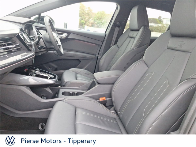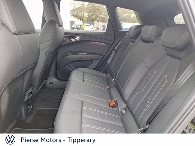 Audi Q4 e-tron Q4 E-Tron S Line 45 286 Electric 82kWh Auto • Adjustable seats • Adjustable steering column/wheel • Air Conditioning • Armrest • Bluetooth Phone • Climate Control • Cruise Control • Digital Dash • Dual Air Conditioning • Dual Climate Control • Electric Mirrors • Electric Windows • Front Electric Windows • Heated Seats • Media Connection • MP3 Connection • Multi-Function Steering Wheel • Power Steering • Rear Electric Windows • Rear headrests • Satellite Navigation • Split Fold Rear Seats • Touch Screen Radio • USB • Auto hold • Car History Checked • Alarm • Auto Handbrake • Auto Lights • Auto Lights and Wipers • Auto Wipers • Centralised locking • Child Locks • Front Parking Sensors • Heated Mirrors • Hill Hold • Immobilizer • Park Distance Control • Parking Assistance • Rear Parking Sensors • Rear View Camera • Remote Central Locking • Alloy Wheels • Leather Steering Wheel • Metallic Paint • Privacy Glass • Sports seats • Tinted Windows • Android Auto • Apple Car Play