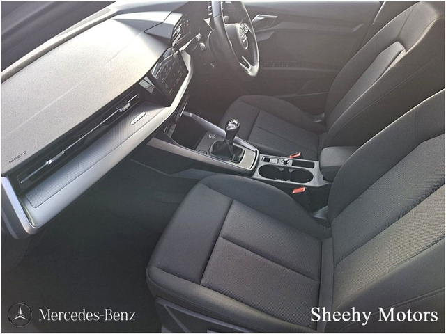 Audi A3 30 TFSI 110HP 1 Year Sheehy Motors Warranty Call Sales on 059 917 4000 Air Conditioning, Auto Handbrake, Auto Lights and Wipers, Centralised locking, Climate Control, Cruise Control, Electric Windows, Immobilizer, Multi-Function Steering Wheel, Front Parking Sensors, Rear Parking Sensors, Front Fog Lights, Outside temperature meter, Rear wiper, Cloth seat trim, Media Connection, Finance Available, Reversing camera