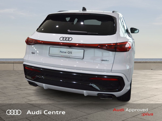 Audi Q5 SUV S line e-hybrid quattro 220 kW S tronic • Audi Sound System • Audi Drive Select • Adaptive Cruise Control • Quattro Four Wheel Drive • 19"Alloys • Black Styling Pack • Metallic Paint • S-Line Body Styling • S-Line Exterior Pack • Ambient Lighting • Armrest • Automatic Air Conditioning • Climate Control • Door Sills with Aluminium Inlays • Electric Mirrors • Electric Windows • Front/Rear Floor Mats • Interior Mirror with Automatic Antiglare Action • 3 Spoke Sports Steering Wheel • Headlining in Black Cloth • Heated Seats • Lumbar Support • ABS • Alarm • Daytime Running Lights • Electronic Stability Programme (ESP) • ISO Fix Front Passenger and Rear Seat Preparation • LED Headlights • Multiple Airbags • MMI Experience Plus • Red Brake Callipers • Front Sports Seats • Heated Mirrors • MMI front passenger display • 360° display • Assist package Drive and Park • Fatigue Warning • Traffic sign-based speed limiter • LED rear lights pro • Audi Connect • Audi Phone Box with wireless charging • Audi Smartphone Interface • Audi Virtual Cockpit • USB charging ports