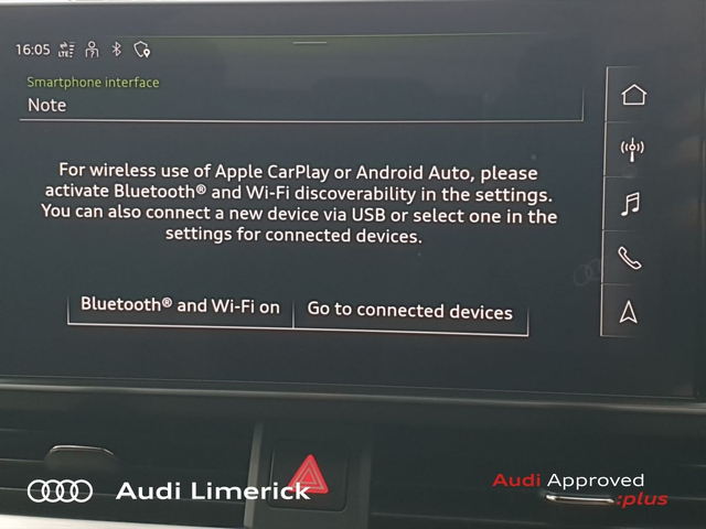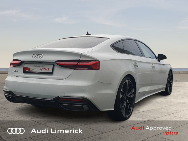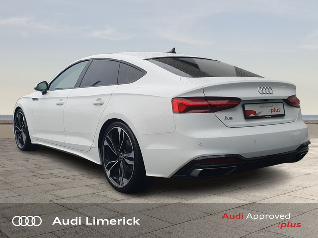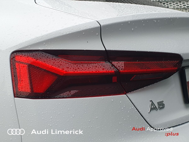 Audi A5 35 TDI 163HP S line + Black Pack + Panoramic Glass Roof • Audi Music Interface • Audi Sound System • Bluetooth Interface • Touchscreen Stereo • Audi Drive Select • Audi Stop/Start • Auto Handbrake • Cruise Control • 20"Alloys • Black Styling Pack • Body Coloured Door Mirrors • High Gloss Black Grille • S-Line Body Styling • S-Line Exterior Pack • Sunroof • Tinted Windows • Air Conditioning • Ambient Lighting • Armrest • Button Start-Stop • Climate Control • Electric Mirrors • Electric Roof • Electric Windows • Front Footwell Illumination • Onboard Computer • Piano Black Inlays • Privacy Glass • Tinted Privacy Glass to Rear of B-Post • Heated Seats • ABS • Active Lane Assist • Alarm • Anti Theft System • Immobilizer • LED Headlights • Light and Rain Sensor • Power Boot Opening and Closing • USB • Front and Rear Park Sensors • Voice control • Apple CarPlay • Audi Smartphone Interface • 7 Speed S-Tronic • Panoramic Sunroof with Electric Shade • Reverse Camera