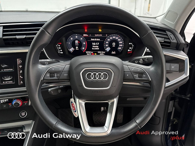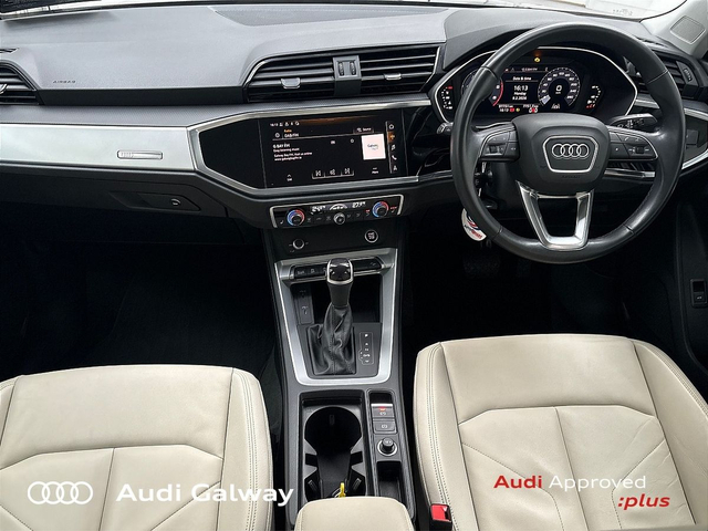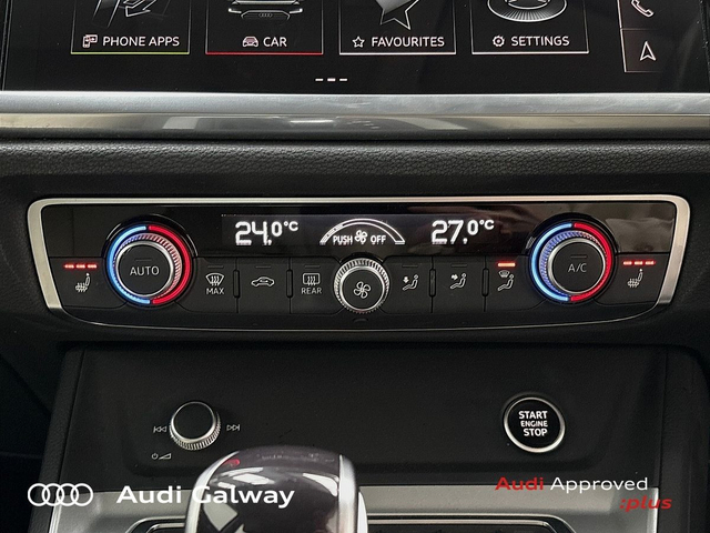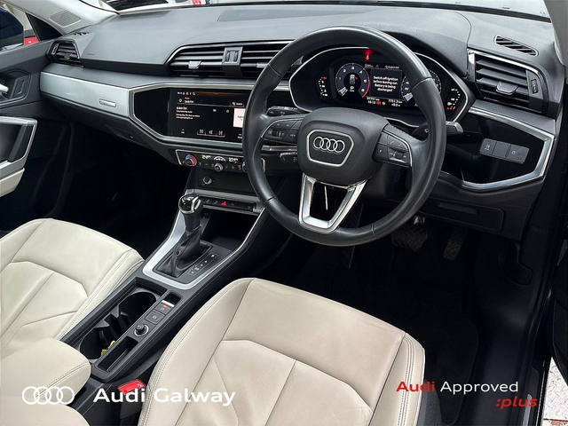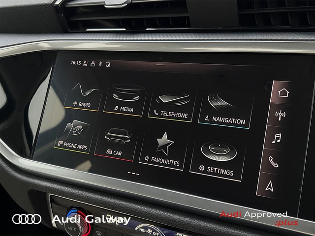 Audi Q3 €399 p/m - TDI 150HP SE A/T • Bluetooth Interface • Hands Free Kit • MMI Radio Plus • Touchscreen Stereo • Audi Drive Select • Audi Stop/Start • Cruise Control • 18"Alloys • Chrome Exterior Package • Chrome Roof Rails • Metallic Paint • Automatic Air Conditioning • Button Start-Stop • Climate Control • Electric Mirrors • Electric Mirrors Heated Memory • Electric Windows • Multi-Function Steering Wheel • Heated Seats • Lumbar Support • Active Lane Assist • Daytime Running Lights • Electronic Stability Programme (ESP) • Light and Rain Sensor • Multiple Airbags • Reverse Camera • Reversing Sensors • Xenon with LED Daytime Running Lights • 12V Power Points in Front + Rear Centre Consoles • Keyless Entry • Chrome-plated trims for exhaust tailpipe • Reverse Camera