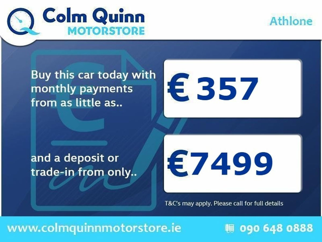 Finance today from €82 per week! (T&C apply) * 12 Month Warranty * * Competitive Finance Options Available on all our Vehicles! * * Call us for more Info on this car or to arrange a Test Drive at Colm Quinn Motorstore, Dublin Road, Athlone on 09064 80888 * Opening Hours: Monday - Saturday 9am - 6pm *