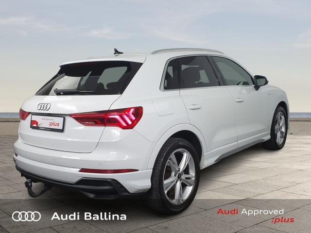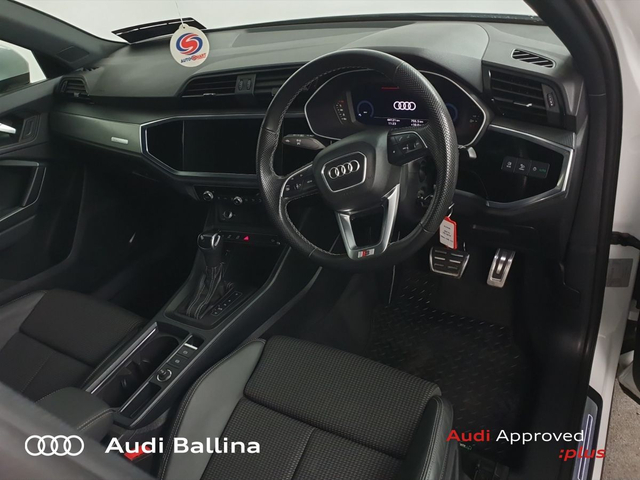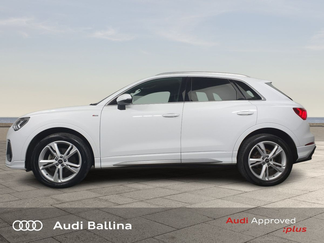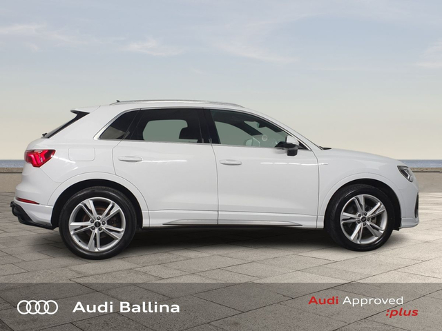 Now available at Connollys Audi Ballina, this stunning 2023 Audi Q3 is finished in GLACIER WHITE METALLIC with a luxurious FULL BLACK interior. Stylish, refined and packed with the latest technology, the Audi Q3 SLINE delivers the perfect combination of performance, comfort and everyday practicality. This low-mileage example has been carefully inspected and prepared by our factory-trained technicians, offering excellent efficiency, smooth driving dynamics and premium interior quality expected from an Audi. This vehicle is supplied through the Audi Approved :plus Programme, providing added reassurance and complete peace of mind for its next owner. If you’re looking for a premium, well-equipped and beautifully presented vehicle, this Audi is an excellent choice. Buying from Connolly’s Audi Ballina gives you peace of mind with: • Fully inspected vehicles • Flexible finance packages available • Trade-ins welcome • Nationwide Delivery Available Available now at Connollys Audi Ballina. Contact our sales team today to arrange a test drive or personalised video tour. • Bluetooth Interface • DAB Digital Radio Module • Touchscreen Stereo • Audi Stop/Start • Cruise Control • Alloy Wheels • Chrome Exterior Package • Metallic Paint • S-Line Exterior Pack • Tinted Windows • Leather Steering Wheel • Auto Lights and Wipers • Child Locks • USB • Front and Rear Park Sensors • Voice control • Speed Limiter • Apple Carplay/Android Auto • Audi Connect • Audi Smartphone Interface • Audi Virtual Cockpit