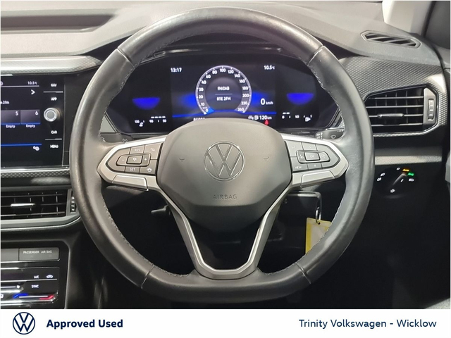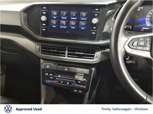 TRINITY VOLKSWAGEN ARE EXCITED TO OFFER THIS STUNNING VOLKSWAGEN T-CROSS SUV FINISHED IN REEF BLUE METALLIC PAINTWORK COMPLEMENTED BY CLOTH SEATING. - PLEASE NOTE PRICE QUOTED INCLUDES €2000 MAXIMUM SCRAPPAGE ALLOWANCE - REATIL PRICE OF CAR €22950 - IT HAS A BEAUTIFUL SPECIFICATION WHICH INCLUDES - 16” BELMONT ALLOY WHEELS - REAR VIEW CAMERA - ELECTRIC HEATED POWER FOLDING MIRRORS - 2 ZONES CLIMATE CONTROL - MULTIFUNCTION LEATHER STEERING WHEEL - ADAPTIVE CRUISE CONTROL - LANE ASSIST - FRONT ASSIST - HILL START ASSIST - APP CONNECT, APLLE CAR PLAY, ANDROID AUTO - 2 X USB FRONT - LOW-RATE FINANCE ARRANGED - DEPOSIT SECURES CAR - CONTACT A MEMBER OF OUR SALES TEAM TODAY ON 0404 25200 TO ARRANGE A TEST DRIVE - TRINITY VOLKSWAGEN DUBLIN ROAD WICKLOW - A67X867 The vehicle information displayed above highlights the typical specification of the most recent model of this vehicle. We offer this information in good faith however cannot guarantee the accuracy of any specification/information supplied as the specification can vary. You must physically check the specification of the vehicle on site prior to purchase. The specification & features on this website do not form part of the buying contract.