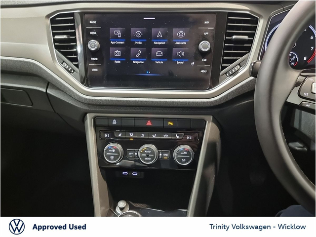 PLEASE NOTE PRICE QUOTED INCLUDES €20000 MAXIMUM SCRAPPAGE ALLOWANCE,RETAIL PRICE OF CAR €27950 TRINITY VOLKSWAGEN ARE EXCITED TO OFFER THIS STUNNING VOLKSWAGEN T-ROC SUV FINISHED IN INDIUM GREY METALLIC PAINTWORK AND IS COMPLEMENTED BY CLOTH SEATING - IT HAS A BEAUTIFUL SPECIFICATION WHICH INCLUDES - 16” CHESTER ALLOY WHEELS - PARKING SENSORS FRONT AND REAR - REAR VIEW CAMERA - ELECTRIC HEATED POWER FOLDING MIRRORS - 2 ZONE CLIMATE CONTROL - MULTIFUNCTION LEATHER STEERING WHEEL - HEATED FRONT SEATS - CRUISE CONTROL - LANE ASSIST - FRONT ASSIST - HILL START ASSIST - HIGH-BEAM CONTROL ASSIST - APP CONNECT, APLLE CAR PLAY, ANDROID AUTO - 2 X USB FRONT - LOW-RATE FINANCE ARRANGED - DEPOSIT SECURES CAR - CONTACT A MEMBER OF OUR SALES TEAM TODAY ON 0404 25200 TO ARRANGE A TEST DRIVE - TRINITY VOLKSWAGEN DUBLIN ROAD WICKLOW - A67X867. The vehicle information displayed above highlights the typical specification of the most recent model of this vehicle. We offer this information in good faith however cannot guarantee the accuracy of any specification/information supplied as the specification can vary. You must physically check the specification of the vehicle on site prior to purchase. The specification & features on this website do not form part of the buying contract.