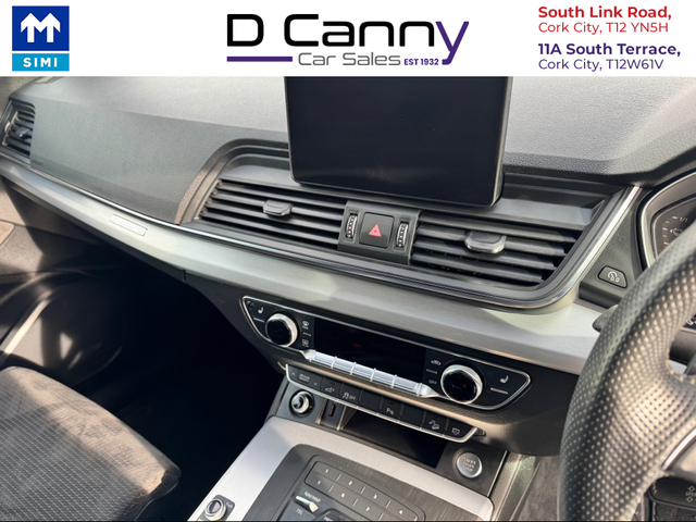 Located at our sales yard we have this beautiful Audi Q5 S-line 2.0 petrol plug in hybrid. This car will come fully serviced and with a warranty included. We also provide excellent finance options to suit everyones needs. www.dcannygarage.ie SIMI members EST 1932 Why buy a car from D Canny Garage. ? 1. 3rd generation working in the motor industry in Cork City. (Family run business) 2. Trading since 1932. 3. SIMI registered garage. 4. SIMI car history check 5. Every car serviced to the highest standard 6. Very strong warranty and after sales care 7. same day finance available through our website 8. Wide variety if vehicles 9.Trade ins welcome 10. KGM Main Dealer SSANGYONG Air Conditioning, Central Locking, Electric Windows, Airbag, Alarm, Alloy Wheels, Cruise Control, Electric Mirrors, Rear Spoiler, Half Leather, Automatic Wipers, Automatic Lights, Centre Armrest, Multi-function steering wheel, Roof Rails, Climate Control, Satellite Navigation, Traction Control, Metallic Paint, Multiple Air Bags, Parking Sensors, Bluetooth, Remote Central Locking, EBD, Electronic handbrake, Folding rear seats, Isofix, Hill holder, Motorised Tailgate, Active Safety Braking / City Brake / Collision Alert, Stop/Start Button, Drive Mode Selector, Daytime Running Lights, 2 Keys, External Devices Connectivity, Cup holders, Remote boot/hatch/rear door release, Stability control