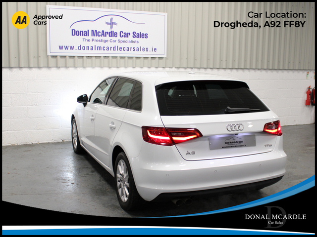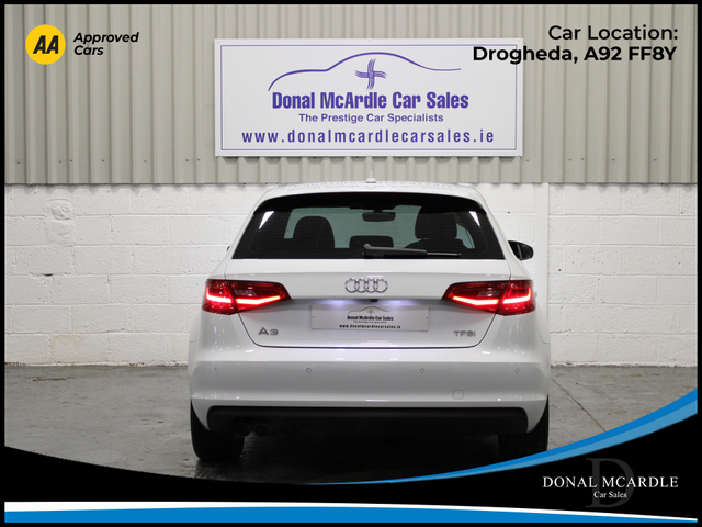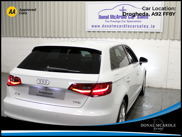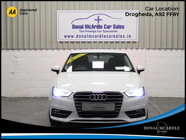 2016 Audi A3 Stylish, Efficient & Premium Performance This 2016 Audi A3 combines sleek European design with comfort, performance, and everyday practicality. With just 89,705 km on the odometer, this well-maintained hatch/sedan offers a smooth driving experience backed by Audis renowned engineering. The A3 features a refined interior with quality finishes throughout, providing a comfortable cabin for both driver and passengers. Its responsive handling and efficient engine make it ideal for city commuting or longer highway trips, while Audis safety technology delivers peace of mind on every drive. Perfect for anyone looking for a premium compact vehicle that balances luxury and reliability, this Audi A3 is a smart choice for drivers who appreciate style and performance in one package. For more details and to organise a test drive or any other questions please give Barry a call on 0879137581 we are always happy to help in any way that we can!!! At Donal McArdle Car Sales you can buy with confidence, with over 20 years experience in the motor trade we have built up a superb reputation for high quality cars and first class customer service. All our AA Approved Cars come with a 1YEAR AA Membership with full roadside assistance, 101 point inspection. We can source any car, colour or spec you desire. All our cars come VRT Paid on irish plates with a cartel report and will be delivered to you with a comprehensive warranty. For out of hours please call Barry on 0879137581. Finance arranged! We are an authorised credit intermediary for AIB Finance, Close Brothers, First Auto Finance and Bluestone finance. Call Barry on 0419844221/0879137581 to arrange a test drive today. Opening hours Mon Fri 9am 530pm. Sat 10am 3pm. Viewing anytime by appointment. 3 Month Warranty, Air Conditioning, Central Locking, Immaculate condition, Electric Windows, Airbag, Alarm, Alloy Wheels, Electric Mirrors, Immobiliser, Privacy Glass, Automatic Wipers, Automatic Lights, Centre Armrest, Multi-function steering wheel, Climate Control, Satellite Navigation, Multiple Air Bags, Xenon Lights, Anti-Theft System, Parking Sensors, Bluetooth, Electronic handbrake, Folding rear seats, Isofix, Reversing Camera, Front Parking Sensors, Stop/Start Button, Dual Zone Climate Control, Daytime Running Lights, 2 Keys, Cup holders