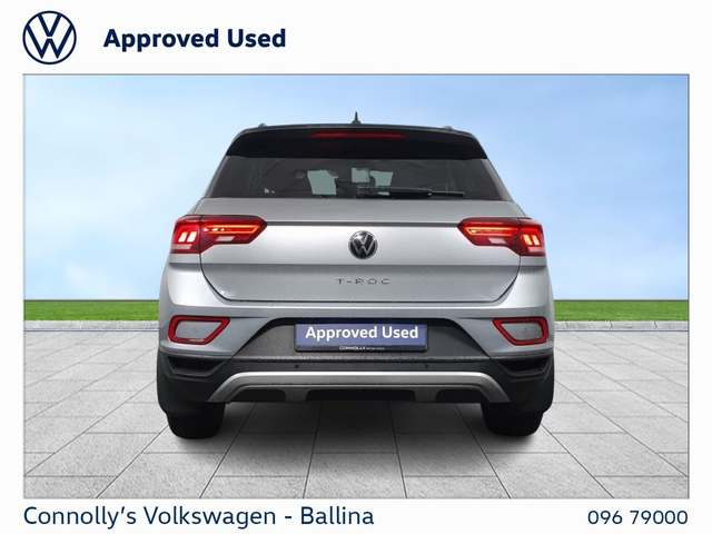 DESCRIPTION: Now available at Connolly’s VW Ballina: The Volkswagen T-Roc is a stylish and versatile compact SUV that combines sporty design with everyday practicality. Offering a comfortable and composed drive, efficient performance, and a slightly elevated driving position, it’s well suited to both urban and motorway journeys. Inside, the T-Roc features a modern, well-built cabin with smart technology and ample space, while maintaining Volkswagen’s strong reputation for quality and reliability, making it a great all-round choice for a wide range of drivers. KEY FEATURES • Digital cockpit display, putting navigation and driving info directly in your line of sight • Apple CarPlay & Android Auto • Reverse parking sensors, Making Parking Effortless • Alloy wheels • Cruise control, giving comfortable motorway driving • Climate Control DEALERSHIP BENEFITS Buying from Connolly’s Volkswagen Ballina gives you peace of mind with: Fully inspected vehicles Minimum 12-month warranty Flexible finance packages available Trade ins welcome Nationwide Delivery Available Call our sales team to arrange a test drive or a personalised walkaround video.