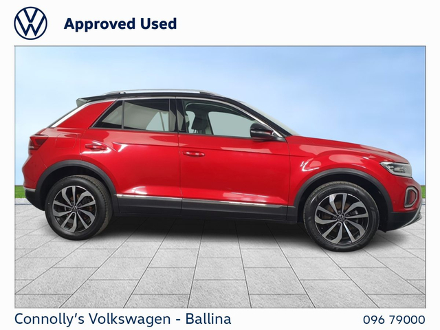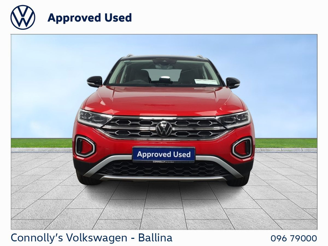 DESCRIPTION: Now available at Connolly’s VW Ballina: The Volkswagen T-Roc is a stylish and versatile compact SUV that combines sporty design with everyday practicality. Offering a comfortable and composed drive, efficient performance, and a slightly elevated driving position, it’s well suited to both urban and motorway journeys. Inside, the T-Roc features a modern, well-built cabin with smart technology and ample space, while maintaining Volkswagen’s strong reputation for quality and reliability, making it a great all-round choice for a wide range of drivers. KEY FEATURES • Digital cockpit display, putting navigation and driving info directly in your line of sight • Apple CarPlay & Android Auto • Reverse parking sensors, Making Parking Effortless • Alloy wheels • Cruise control, giving comfortable motorway driving • Climate Control DEALERSHIP BENEFITS Buying from Connolly’s Volkswagen Ballina gives you peace of mind with: Fully inspected vehicles Minimum 12-month warranty Flexible finance packages available Trade ins welcome Nationwide Delivery Available Call our sales team to arrange a test drive or a personalised walkaround video.