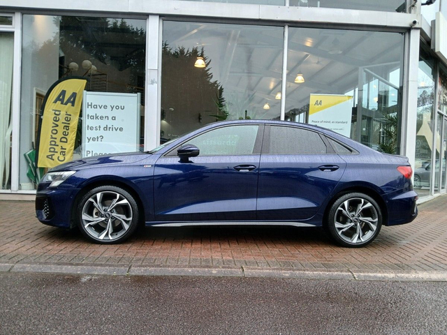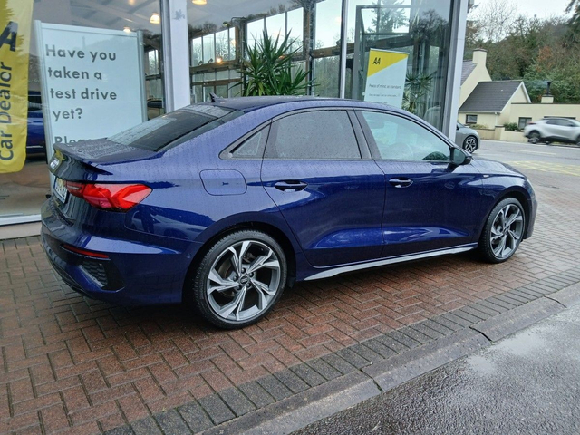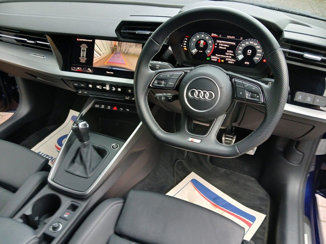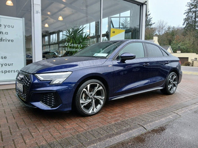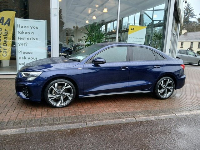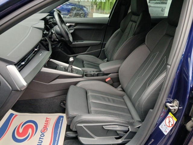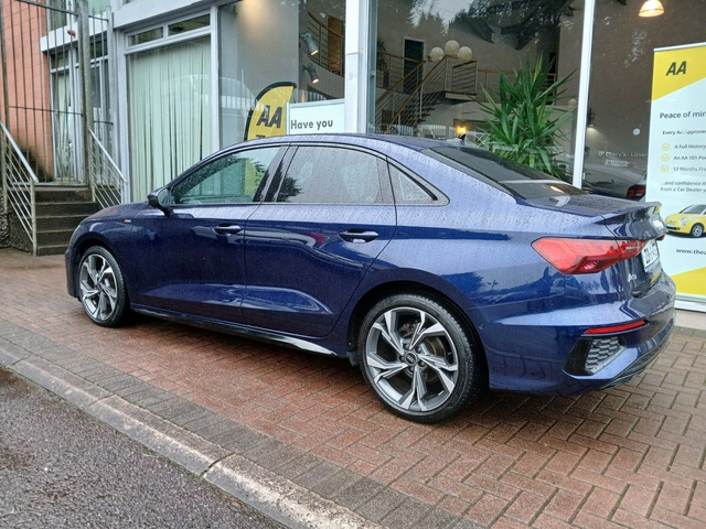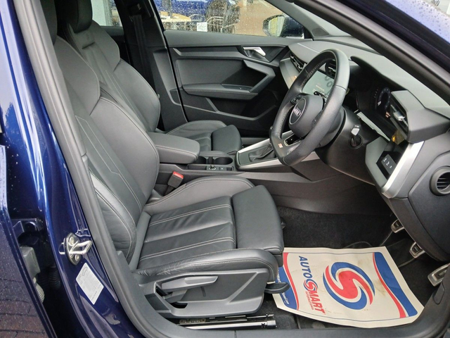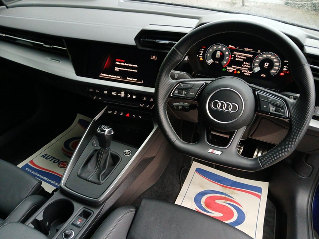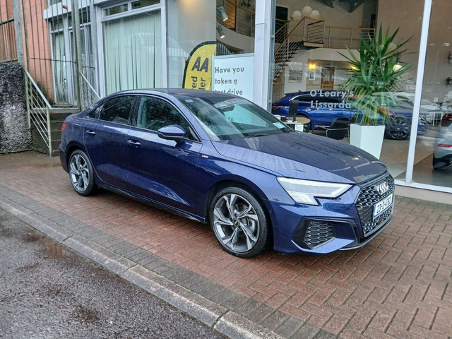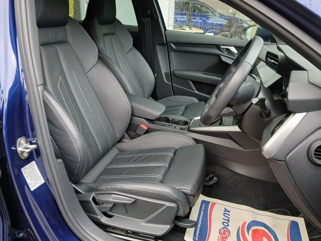 Audi A3 30 TFSI 110HP S- Line Saloon, Navarra Blue, 26km. • Armrest • Bluetooth Phone • Climate Control • Electric Mirrors • Heated front seats • Onboard Computer • Rain sensor • Auto Handbrake • Auto Lights and Wipers • Heated Mirrors • ISO Fix • Rear view camera • Alloy Wheels • Leather Interior • Metallic Paint • Sports Seats • High Beam Assist
