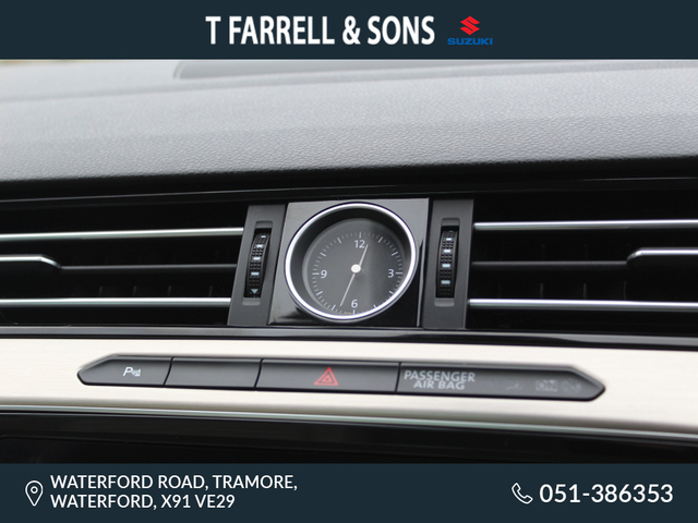 THIS CAR IS AT OUR TRAMORE SHOWROOM 051386353 Welcome to T.FARRELL & SONS-TRAMORE as part of a family business for over 30 years. We know the value of repeat business and looking after our customers which is why we are so selective in purchasing all of our pre-owned selection. Tramore Car Centre are specialists in all different makes and models of vehicles and have a fully Equipped Workshop in house so we can always cater for any problem and have become a one stop shop in the south east to solve any problem with dealer level and above. Everything is catered for here (including diagnostics), so why not buy from the experts. Open Monday to Friday 8.30am - 6pm Saturday 10am - 2pm For out of hours or Sunday appointments please contact Dean (051) 386353 visit www.tramoregarages.ie Central Locking, Electric Windows, Airbag, Fog Lamps, Privacy Glass, Centre Armrest, Multi-function steering wheel, Satellite Navigation, Traction Control, Metallic Paint, Parking Sensors, Bluetooth, EBD, Isofix, Active Safety Braking / City Brake / Collision Alert, Stop/Start Button, External Devices Connectivity, Cup holders, Remote boot/hatch/rear door release, Stability control