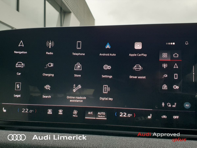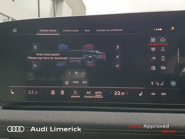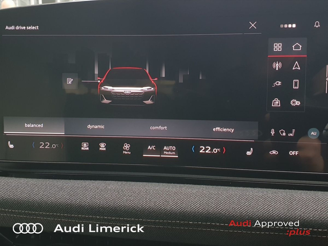 Audi A6 Sportback e-tron *SAVE €10700 VS NEW RRP* A6 SB E-TRON PERFORMANCE S LINE • Audi Music Interface • Audi Sound System • Bluetooth Interface • MMI SAT Nav • Satelitte Navigation • Touchscreen Stereo • Audi Drive Select • Audi Stop/Start • Adaptive Cruise Control • 20"Alloys • Black Styling Pack • High Gloss Black Grille • High Gloss Pack • Matt Black Radiator Grille and Number Plate Holder • Metallic Paint • S-Line Body Styling • Air Conditioning • Ambient Lighting • Armrest • Button Start-Stop • Colour Driver Information system • Door Opening Illumination Lights • Door Sills with Aluminium Inlays • Dual Climate control • Electric Mirrors • Electric Mirrors Heated Memory • Electric Windows • Front/Rear Floor Mats • Illuminated Vanity Mirror • Interior Lighting Pack • LED Interior Light Pack • Piano Black Inlays • Privacy Glass • Split Fold Rear Seats • Tinted Privacy Glass to Rear of B-Post • 3 Spoke Sports Steering Wheel • Electrically Adjustable Seats • Heated Seats • Leather Steering Wheel • Valcona Leather Upholstery • ABS • Active Lane Assist • Alarm • Anti-Lock Brake System • Anti Theft System • Audi Matrix LED Headlights • Auto Lights and Wipers • Child Locks • Daytime Running Lights • Deadlocks • Electronic Stability Programme (ESP) • Front and Rear Park Assist • Front Side Airbags with Curtain Airbags • High Beam Assist • Immobilizer • ISO Fix • ISO Fix Front Passenger and Rear Seat Preparation • Light and Rain Sensor • Locking Wheel Bolts • Multiple Airbags • Power Boot Opening and Closing • Rear Park Assist • Reverse Camera • Reversing Sensors • Remote Electric Tailgate Opening/Closing • Side Impact Protection • Total Closure System • USB • Front and Rear Park Sensors • Voice control • Apple CarPlay • Audi Smartphone Interface • Audi Virtual Cockpit • Sports Pro Seats • Adaptive Cruise Control with Lane Guidance • Rear Dynamic Indicators • USB charging ports