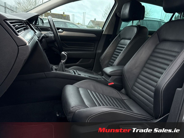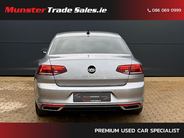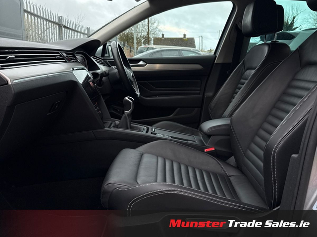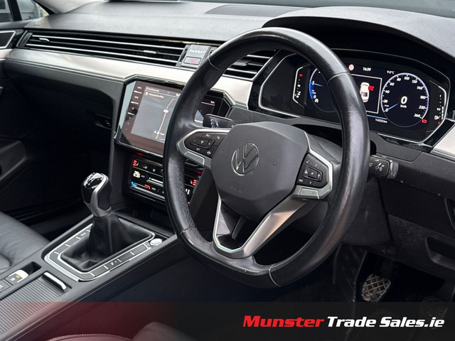 2021 Volkswagen Passat 2.0 TDI Elegance – 150 PS – Manual Pyrite Silver Metallic | Nappa Leather | Elegance Model | High Spec Available now at Munster Trade Sales A refined and spacious executive saloon, this Passat Elegance blends premium comfort, strong diesel efficiency, and advanced technology. Finished in Pyrite Silver Metallic with upgraded Nappa leather, this is one of the best-equipped Passat models available. Key Exterior Features Pyrite Silver Metallic 17” Nivelles Alloy Wheels (Diamond-Turned) LED Headlamps + LED DRLs LED Rear Lights & Front Fog Lamps Chrome Exterior Detailing Privacy Glass Rear-View Camera Easy Open Boot (Hands-Free Access) Premium Interior Full Nappa Leather Upholstery Sports Comfort Front Seats Heated Front Seats 3-Zone Air Care Climatronic Ambient Interior Lighting Piano Black Centre Console Trim Auto-Dimming Interior Mirror Fold-Down Rear Armrest with Load-Through Technology & Safety Discover Pro Navigation with Streaming & Internet Digital Cockpit (Multi-Colour Displays) Wireless Apple CarPlay & Android Auto Mobile Phone Interface with Wireless Charging Adaptive Cruise Control (ACC) Lane Assist + Side Assist + Rear Traffic Alert Front Assist Autonomous Braking Performance 2.0 TDI – 150 PS 6-Speed Manual Transmission Recent Work & Preparation Full Vehicle Inspection & Major Service Completed Timing Belt & Water Pump Just Replace For full details, visit: www.munstertradesales.ie Eircode: V94 RKTO Opening Hours: Mon–Fri: 9.00am – 8.00pm Saturday: 9.00am – 6.00pm • Professionally valeted & Detailed • Car History Checked • Finance Available
