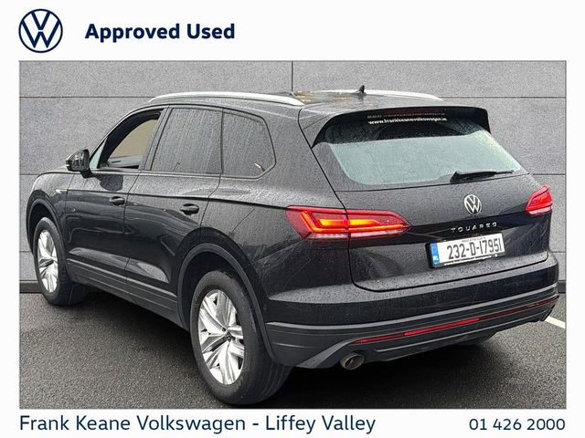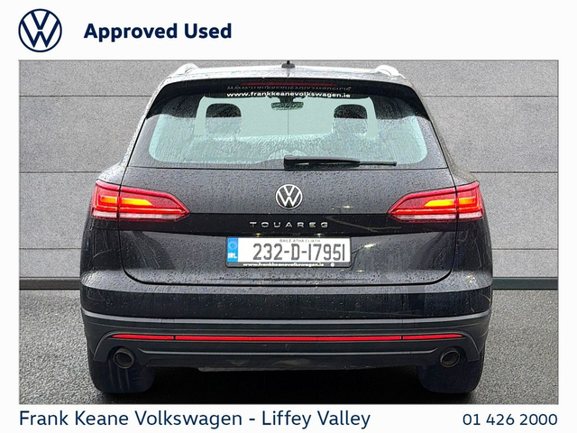 FRANK KEANE - Customer Driven Since '67. TOUAREG COMMERCIAL 2-SEATER at Frank Keane Volkswagen Liffey Valley, We have this 2023 Volkswagen Touareg Commerical with just 112,756KM. Finished in GRENADILLA BLACK METALLIC with a Full Leather Interior. Experience complete confidence with the Frank Keane Volkswagen Optional Pre-Owned Vehicle Protection Pack — including a 24-month warranty, 3-year Return to Invoice (RTI) investment protection, and 3-year paint, glass, and upholstery protection with LifeShine. Premium cover, expertly designed to protect your vehicle and your investment. To Learn more, speak to one of our Sales Team in Frank Keane Volkswagen Liffey Valley today. Specification that Includes • Full Leather • Rear View Camera, • Electric Tailgate, • CarPlay & Android Auto, • Heated Seats, • LED Headlights, • Adaptive Cruise Control, • 4Motion Drive Select, • Large Rear Load Space, • Climate Control. Please contact our Sales Team today for a Personalized Video of this Car, Digital Part Exchange Valuations and Tailored Funding Options to meet your needs on 01-4262000 or email [email protected] Frank Keane Volkswagen offers the highest levels of value and customer experience across both sales and service. Located at Liffey Valley Motor Mall, we ensure all our used vehicles are prepared to the highest of standards and come with a minimum of 12 months warranty. Call us 01-4262000 to arrange an appointment with our Sales Team. FRANKKEANEVOLKSWAGEN.IE