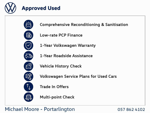 | Contact info: | Michael Moore Portarlington Volkswagen Garryhinch Cross Portarlington County Laois Ph: 057-8624102 |