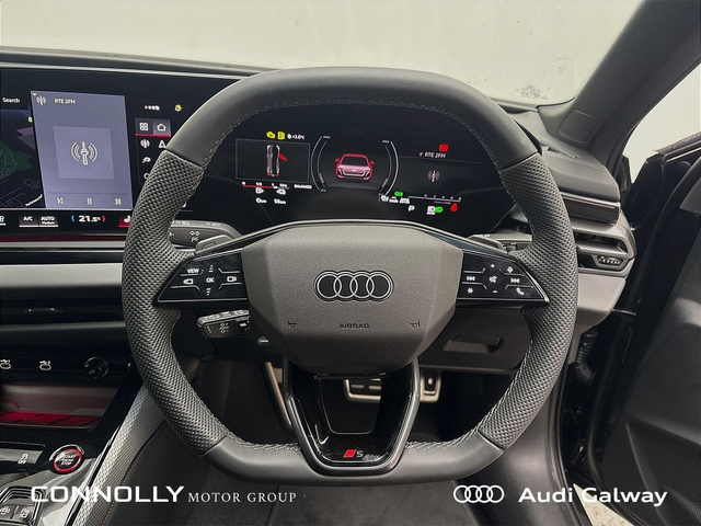 Striking, powerful, and packed with innovation—the 2026 Audi A5 Saloon S line Competition e-hybrid quattro in Mythos Black delivers next-level performance with unmistakable presence. Exterior: • Deep Mythos Black finish for a sleek, commanding look • S line Competition styling with enhanced sporty detailing • Black styling elements for a more aggressive, performance-inspired design • Eye-catching red brake callipers adding a bold performance accent • Signature Audi Singleframe grille with bold presence • LED headlights and taillights for sharp, modern visibility ? ?Interior: • Black Dinamica microfiber and leather combination seats for a sporty, premium feel • Heated front seats for everyday comfort • Ambient Lighting Package Pro creating a fully customisable cabin atmosphere • Audi Virtual Cockpit with advanced digital display • MMI infotainment system with intuitive touchscreen controls • Integrated navigation system with enhanced functionality (Tech Plus Pack) • Smartphone integration (Apple CarPlay & Android Auto) • Adaptive Cruise Assist Plus for semi-automated driving support • Advanced driver assistance systems for added safety and convenience • Dual-zone climate control for personalised comfort Performance&Charge: • High-output plug-in hybrid system delivering 270 kW for strong, dynamic performance • 0–100 km/h in approximately 5.1 seconds • Charging time of approx. 2.5–3 hours (AC wallbox) for a full charge • Quattro all-wheel drive ensuring excellent grip and stability • S tronic automatic transmission for fast, seamless gear changes • Multiple driving modes including EV, hybrid, and battery hold • All-electric range of up to approx. 90–100 km (WLTP) for daily electric driving • Regenerative braking system to maximise efficiency • Intelligent energy management balancing performance with low consumption Bold, efficient, and engineered to perform—the Audi A5 S line Competition e-hybrid sets a new standard for modern driving.