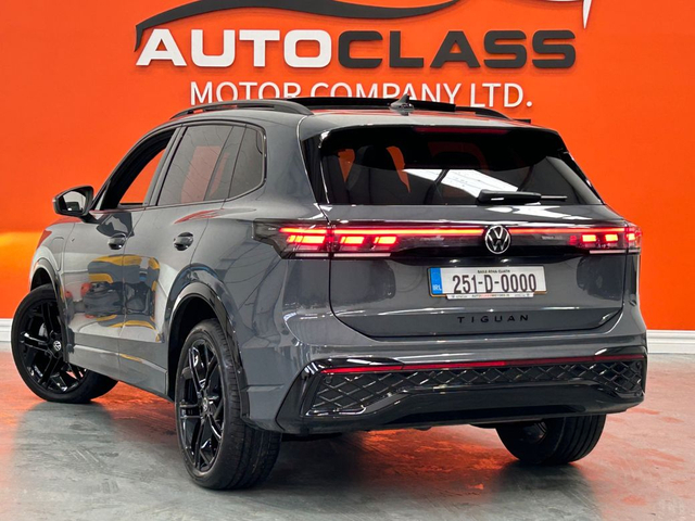 Volkswagen Tiguan R-Line eHybrid – Petrol Plug-In Hybrid – Panoramic Sunroof – High Spec with massage seats, blind spot recognition, 360 parking cameras also 2 wireless phone chargers Stunning Volkswagen Tiguan R-Line eHybrid, finished in sleek metallic grey with full R-Line styling. A perfect blend of performance, efficiency and premium comfort. This plug-in hybrid delivers strong petrol performance with the benefit of electric driving for shorter journeys — ideal for cutting fuel costs without compromising on power. Key Features: Full R-Line styling pack Panoramic glass sunroof Petrol Plug-In Hybrid (eHybrid) Black alloy wheels LED headlights Digital cockpit Large touchscreen infotainment system Parking sensors Privacy glass Multifunction flat-bottom steering wheel The R-Line trim gives this Tiguan a much more aggressive and sporty look, with upgraded bumpers, styling details and a premium interior finish. Smooth, refined and economical to run — perfect for both city driving in electric mode and longer motorway journeys with hybrid power. Some Of Our Standard Features Include: - Warranty Included - NCT Passed - Finance Packages Available - Fully Serviced and Professionally Valeted In House - Trade In Welcome - SIMI Registered - 5 Star Rated Dealer For any further enquires such as viewing appointment, personalised video request, holding deposit or to book a test drive, please feel free to call our Sales team. Based in our new state of the art facility in Kingswood Business Park, Auto Class Motors has fast become one of the leading, nationwide suppliers of quality used vehicles in Ireland. We pride ourselves on our customer service and attention to detail when preparing our vehicles for sale. Our vehicles are all fully serviced, history checked, valeted and come with a comprehensive Auto Class dealership warranty. This ensures that you are buying with confidence. Our reviews speak for themselves, so please feel free to browse our stock or check us out on social media for all of our latest arrivals and special offers. We look forward to welcoming you and adding you to our long list of satisfied customers.