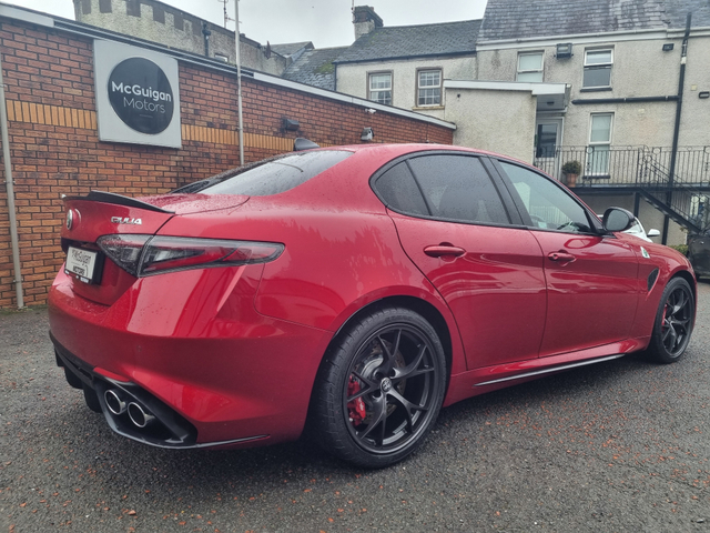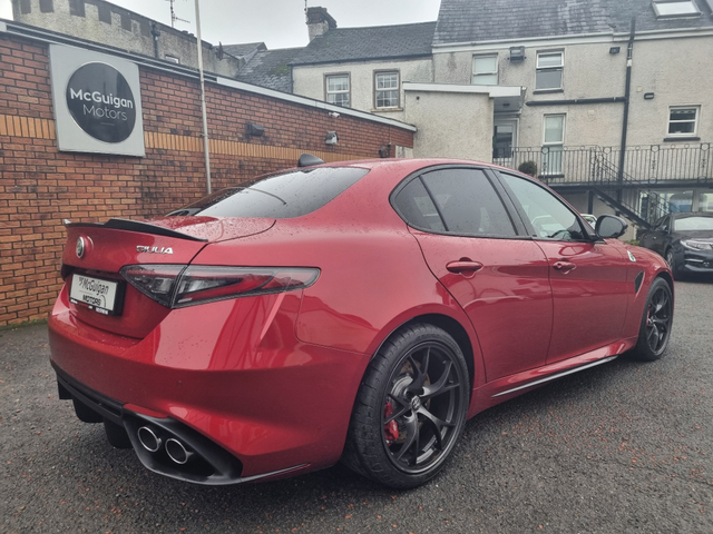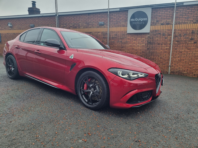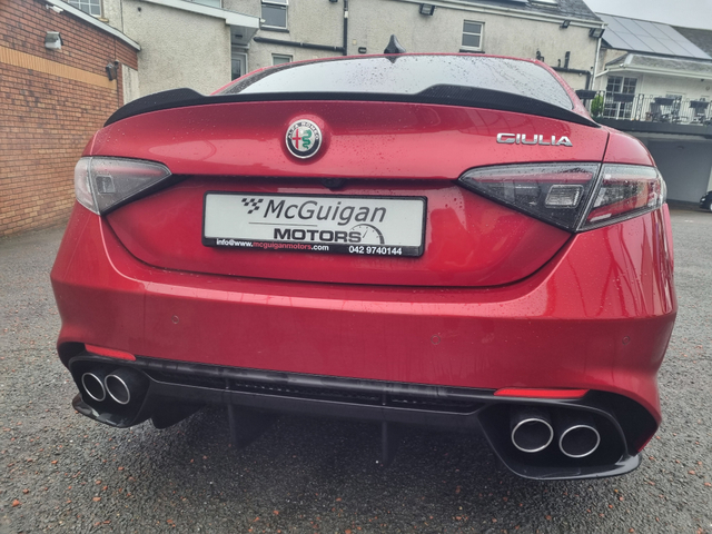 We are delighted to offer to the market a rare opportunity to own a late 2025 Alfa Romeo Giulia Quadrifoglio 2.9 Bi-Turbo 510 HP. Stunning car. Full dealer facilities with same day competitive finance. Please call for full details to 042 9740144 or 086 8261444 Thank you. Central Locking, Electric Windows, Airbag, Cruise Control, Rear Spoiler, Privacy Glass, Centre Armrest, Multi-function steering wheel, Satellite Navigation, Traction Control, Anti-Theft System, Parking Sensors, Bluetooth, Isofix, Apple Car Play, Android Auto, Active Safety Braking / City Brake / Collision Alert, Stop/Start Button, External Devices Connectivity, Cup holders, Stability control