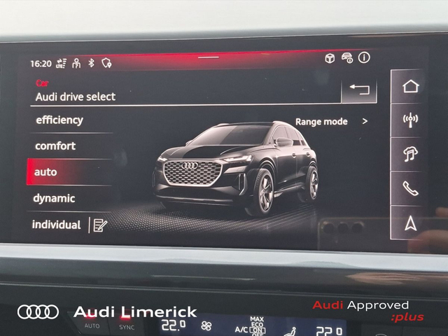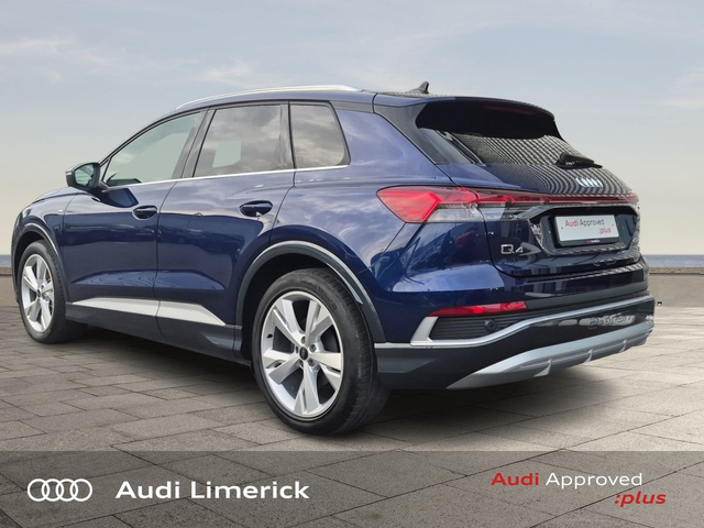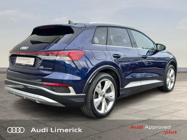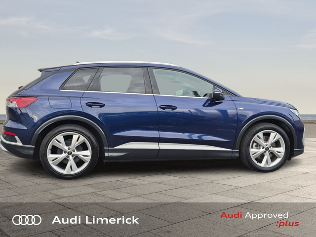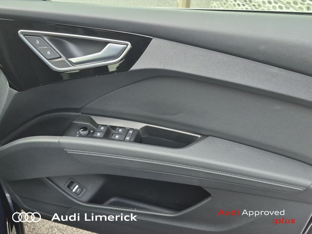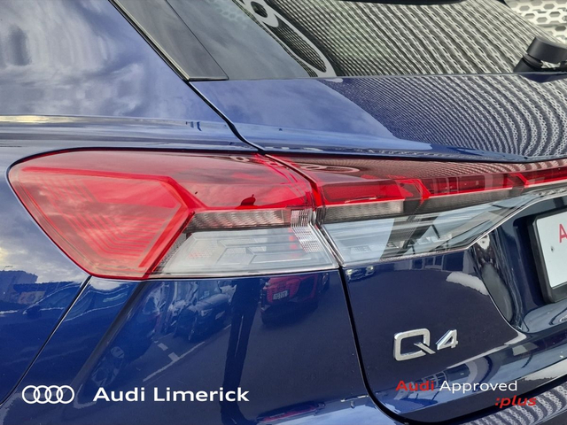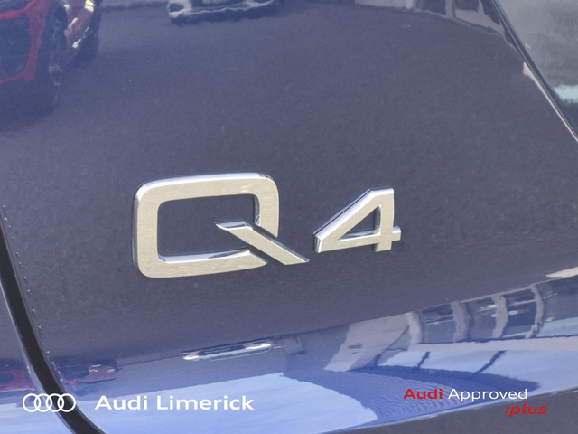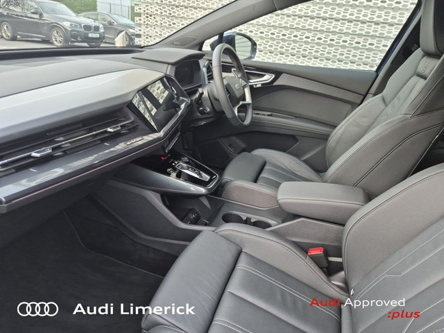 Audi Q4 e-tron 45 S Line *High Spec* • Audi Music Interface • Audi Sound System • Bluetooth Interface • Satelitte Navigation • Touchscreen Stereo • Audi Drive Select • Audi Stop/Start • Adaptive Cruise Control • 19"Alloys • Body Coloured Door Mirrors • Metallic Paint • S-Line Body Styling • Spoiler • Air Conditioning • Ambient Lighting • Armrest • Button Start-Stop • Colour Driver Information system • Door Opening Illumination Lights • Door Sills with Aluminium Inlays • Dual Climate control • Electric Mirrors • Electric Windows • Front Footwell Illumination • Front/Rear Floor Mats • Illuminated Centre Console Storage • Illuminated Vanity Mirror • LED Interior Light Pack • Onboard Computer • Privacy Glass • Rake/Reach Adjustable Steering Column • Tinted Privacy Glass to Rear of B-Post • Headlining in Black Cloth • Heated Seats • Leather Interior • Valcona Leather Upholstery • ABS • Active Lane Assist • Alarm • Anti-Lock Brake System • Anti Theft System • Auto Lights and Wipers • Child Locks • Daytime Running Lights • Electronic Stability Programme (ESP) • Front and Rear Park Assist • High Beam Assist • Hill Descent Assist • Immobilizer • ISO Fix • LED Headlights • Light and Rain Sensor • Power Boot Opening and Closing • Rear Park Assist • Reverse Camera • Reversing Sensors • Side Impact Protection • Warning Triangle • Apple CarPlay • Audi Smartphone Interface • Audi Virtual Cockpit • Adaptive Cruise Control with Lane Guidance • Audi Lane Assist