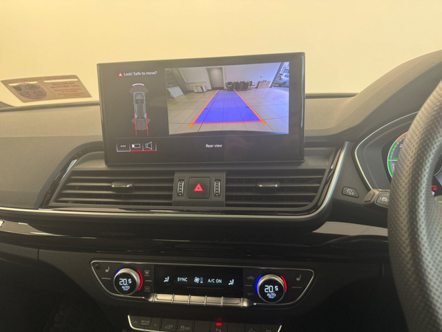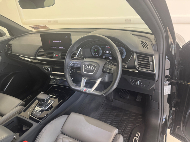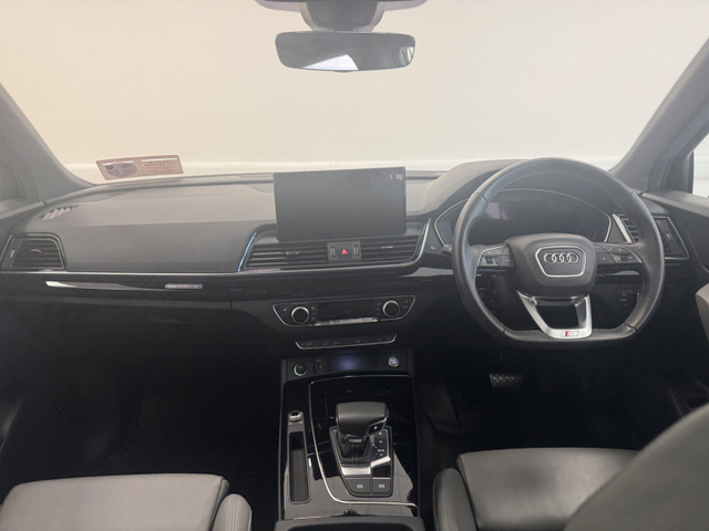 Audi Q5 2025 black Air conditioning, Climate control, Dual zone climate control, Multi zone climate control, Armrest, Keyless entry, Electrically adjustable seats, Electric boot, Electric side mirrors, Electric windows, Electric handbrake, Heated seats, Lumbar support, Multi-function steering wheel, Rain sensor, Split rear seats, Gear shift paddles, Android Auto, Apple CarPlay, Bluetooth, 12v power outlet, Radio, Touch screen display, USB connection (front), Cruise control, Hill hold assist, Parking camera, Front parking sensors, Rear parking sensors, Remote boot release, Roof rails, Speed limiter, Start-stop system, Voice control, Parking assistance, Digital instrument panel, Alloy wheels, Leather steering wheel, Spoiler, Sports seats, Ambient lighting, Auto lights (dusk sensor), Daytime running lights, Fog lights, LED headlights, ABS, Anti collision system, Emergency brake assist, Central locking, Remote central locking, Driver-side airbag, Immobilizer, Isofix, Tyre pressure monitor, Passenger-side airbag, Seat belt warning, Side airbag, Stability control, Traction control, Emergency tyre repair kit, 4WD, Sport suspension