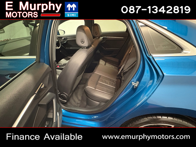 2022 (221) AUDI A3 2.0 TDI SPORT SALOON BIG SPEC *****FREE NATIONWIDE DELIVERY***** **FINANCE THIS CAR FOR €75 PER WEEK WITH €10950 DEPOSIT OR TRADE IN*** **FINANCE CAN BE TAILORED TO SUIT THE CUSTOMER** **APPLY FOR FINANCE @ WWW.EMURPHYMOTORS.COM// //ALL CREDIT/DEBIT CARDS BANK TRANSFERS ACCEPTED// -ONE OWNER CAR FROM NEW -ONLY 89436 WARRANTED MILES -FULL SERVICE HISTORY -LOW ROAD TAX OF €190 PER YEAR -FINISHED IN STUNNING AZUL BLUE METALLIC **BRAND NEW SET OF AUDI S3 ALLOYS & TYRES JUST FITTED(INCLUDED IN PRICE)** **WITH A HOST OF EXTRAS TOO MANY TO LIST** -FULL BLACK LEATHER INTERIOR -HEATED FRONT SEATS -VIRTUAL COCKPIT -REVERSE CAMERA -FRONT & REAR PARKING SENSORS -DUAL CLIMATE CONTROL -CRUISE CONTROL -SATELITTE NAVIGATION -BI/XENON HEADLIGHTS -AUTO LIGHTS & WIPERS -19" ALLOY WHEELS - DAYTIME RUNNING LIGHTS -6 SPEED TRANSMISSION -REAR HALF PRIVACY GLASS & MUCH MORE!!!!!! -FULLY SERVICED & FULLY CHECKED OVER TO MAIN DEALER STANDARDS -FULLY VALETED & DETAILED -ALL OUR VEHICLES COMES WITH A FULL CARTELL REPORT -SUITABLE TRADE IN ACCEPTED //OPEN MONDAY-FRIDAY 9-6PM// //SATURDAY BY APPOINTMENT ONLY// WE ARE LOCATED JUST 10 MINUTES OFF J17 OF M1 MOTORWAY (ONLY 45 MINUTES FROM DUBLIN AIRPORT) E MURPHY MOTORS FOR QUALITY RANGE & SERVICE **BUY WITH CONFIDENCE FROM A SIMI APPROVED DEALERSHIP** //LIKE US ON FACEBOOK FOR FULL VIDEOS ON ALL OUR STOCK// **AWARD WINNING DEALERSHIP BEST ONLINE MARKETING 2022** **CARSIRELAND BEST SOCIAL MEDIA Q4 2022** **CARSIRELAND BEST SOCIAL MEDIA Q3 2023** **CARSIRELAND BEST SOCIAL MEDIA Q1 2024** features -adjustable seats -adjustable steering column/wheel -bluetooth phone -4 x electric windows -electric & heated mirrors -auto lights & wipers -front & rear parking sensors -isofix seats -3x3 point rear seat belts -child locks -multiple airbags -satelitte navigation -body coloured bumpers & mirrors -cruise control -6 speed transmission -rear half privacy glass Perfect working order, 6 Month Warranty, Air Conditioning, Central Locking, Immaculate condition, Electric Windows, Airbag, Alloy Wheels, Cruise Control, Electric Mirrors, Immobiliser, Full Leather, Privacy Glass, Automatic Wipers, Automatic Lights, Centre Armrest, Luggage Cover, Multi-function steering wheel, Satellite Navigation, Traction Control, Metallic Paint, Multiple Air Bags, Xenon Lights, Anti-Theft System, Parking Sensors, Bluetooth, Brand New Tyres, Remote Central Locking, EBD, Electronic handbrake, Folding rear seats, Six speed transmission, Isofix, Hill holder, History Checked, Finance Checked, Apple Car Play, Android Auto, Heated Front Seats, Front Parking Sensors, Active Safety Braking / City Brake / Collision Alert, Stop/Start Button, Dual Zone Climate Control, Daytime Running Lights, 2 Keys, Main Dealer Service History, External Devices Connectivity, Cup holders, Remote boot/hatch/rear door release, Stability control