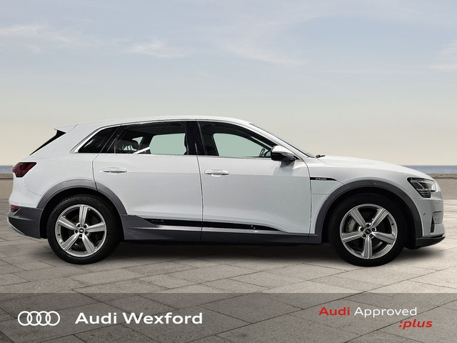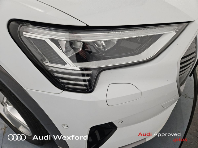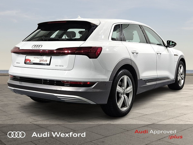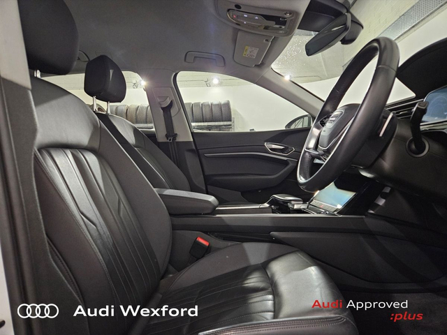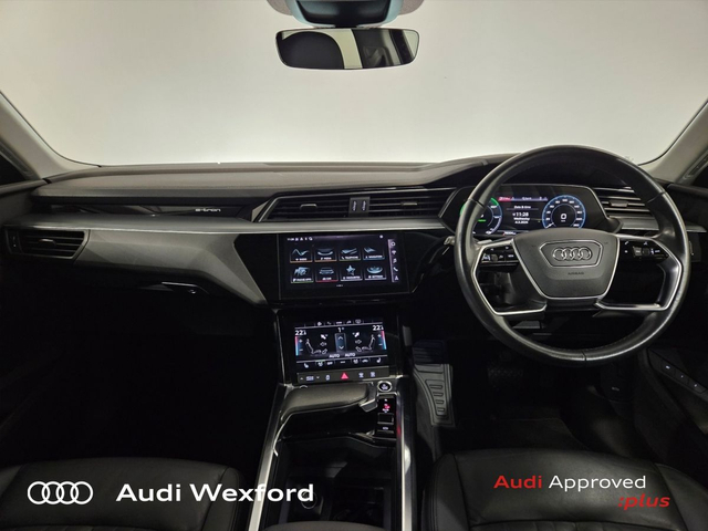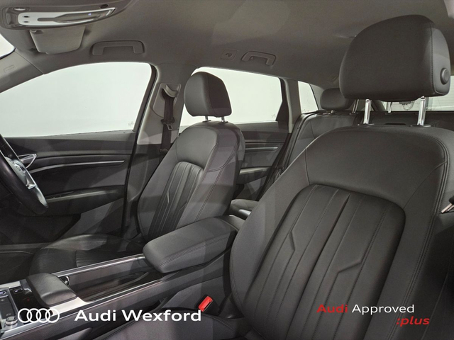 Audi e-tron 50 Quattro Technik €280p/m • Bluetooth Interface • Hands Free Kit • Mobile Device Interface (Media-In) • Mobile Phone Preparation-Bluetooth • Audi Drive Select • Audi Stop/Start • Auto Handbrake • Cruise Control • Engine Recuperation • Power Assisted Steering • Quattro Four Wheel Drive • Alloy Wheels • Armrest • Button Start-Stop • Climate Control • Electric Mirrors • Electric Windows • Front/Rear Floor Mats • Multi-Function Steering Wheel • Onboard Computer • Upholstery and Seats • Heated Seats • Leather Interior • Leather Steering Wheel • Lumbar Support • ABS • Auto Lights and Wipers • Daytime Running Lights • Front and Rear Park Assist • Hill Hold Assist • ISO Fix • LED Headlights • Light and Rain Sensor • Multiple Airbags • Reverse Camera • Remote Central Locking • USB • Speed Limiter • Audi Connect • Keyless Go • USB charging ports