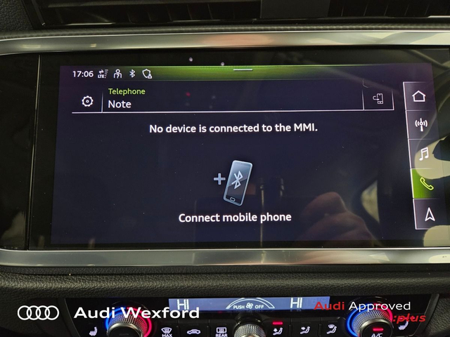 Audi Q3 35 TDI 150HP S Tronic SE AUTO €378p/m • Audi Music Interface • Audi Sound System • Bluetooth Interface • Mobile Phone Preparation-Bluetooth • Touchscreen Stereo • Audi Stop/Start • Auto Handbrake • Cruise Control • Power Assisted Steering • Alloy Wheels • Metallic Paint • Space Saver Spare Wheel • Air Conditioning • Armrest • Button Start-Stop • Electric Mirrors • Electric Windows • Multi-Function Steering Wheel • Lumbar Support • ABS • Child Locks • High Beam Assist • ISO Fix • Light and Rain Sensor • Multiple Airbags • Reversing Sensors • USB • USB charging ports