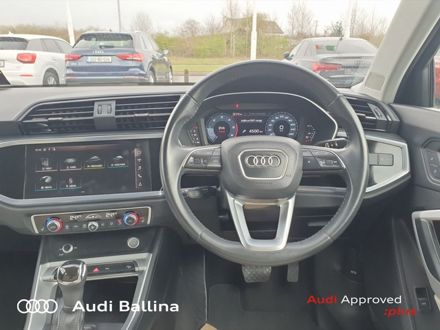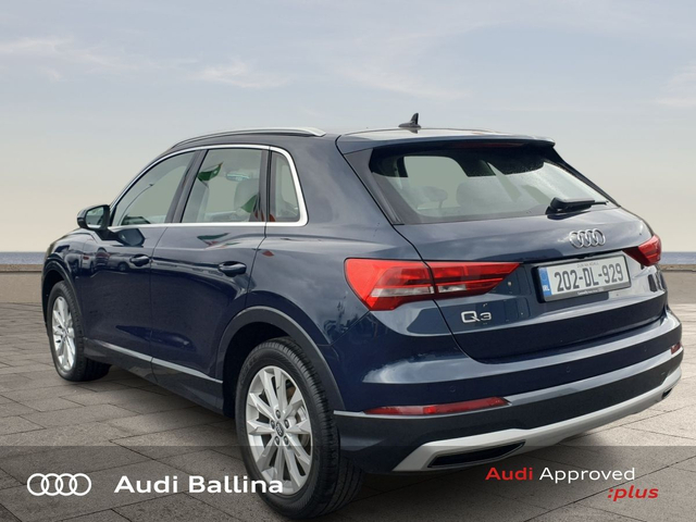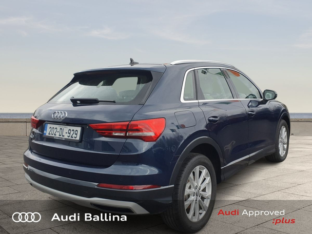 Now available at Connollys Audi Ballina, this stunning 2020 Audi Q3 is finished in COSMO BLUE METALLIC with a luxurious FULL BEIGE interior. Stylish, refined and packed with the latest technology, the Audi Q3 SE delivers the perfect combination of performance, comfort and everyday practicality. This low-mileage example has been carefully inspected and prepared by our factory-trained technicians, offering excellent efficiency, smooth driving dynamics and premium interior quality expected from an Audi. This vehicle is supplied through the Audi Approved :plus Programme, providing added reassurance and complete peace of mind for its next owner. If you’re looking for a premium, well-equipped and beautifully presented vehicle, this Audi is an excellent choice. Buying from Connolly’s Audi Ballina gives you peace of mind with: • Fully inspected vehicles • Flexible finance packages available • Trade-ins welcome • Nationwide Delivery Available Available now at Connollys Audi Ballina. Contact our sales team today to arrange a test drive or personalised video tour. • Bluetooth Interface • DAB Digital Radio Module • Touchscreen Stereo • Audi Stop/Start • Cruise Control • Alloy Wheels • Chrome Exterior Package • Metallic Paint • Button Start-Stop • Heated Seats • Leather Steering Wheel • Hill Hold Assist • USB • Front and Rear Park Sensors • Voice control • Speed Limiter • Apple Carplay/Android Auto • Audi Connect • Audi Smartphone Interface • Audi Virtual Cockpit