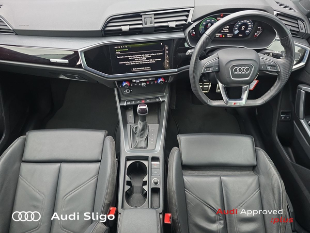 Audi Q3 1.4TFSI E Black Edition S Line - Plug-in Hybrid - S Tronic - Heated Leather Seats - • Mobile Phone Preparation-Bluetooth • Touchscreen Stereo • Audi Drive Select • Audi Stop/Start • Cruise Control • Alloy Wheels • 19"Alloys • Black Styling Pack • High Gloss Black Grille • Armrest • Automatic Air Conditioning • Split Fold Rear Seats • Heated Seats • Lumbar Support • Audi Pre Sense • Audi Connect • Audi Lane Assist • Audi Smartphone Interface • Audi Virtual Cockpit • LED Headlights with dynamic rear indicators • USB charging ports