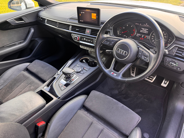 2017 Audi A5 S-Line Black Edition 2.0 Diesel Auto transmission 190bhp 102k miles Full service history Gearbox service @80k miles Timing belt & water pump replaced Upgraded 20 alloy wheel & tyre package Apple / Android CarPlay Heated seats Electric boot Car will be sold with the following Registered on Irish registration to new owners home county 2 years NCT 3 months tax 3 months warranty Full service Full clean history check Trade in accepted Nationwide delivery available Finance options available Call or WhatsApp Darren on 0877731442 to arrange a viewing €22950 straight sale price €23950 trade in price Central Locking, Electric Windows, Airbag, Centre Armrest, Multi-function steering wheel, Satellite Navigation, Traction Control, Anti-Theft System, Parking Sensors, Bluetooth, EBD, Isofix, Active Safety Braking / City Brake / Collision Alert, Stop/Start Button, External Devices Connectivity, Cup holders, Remote boot/hatch/rear door release, Stability control