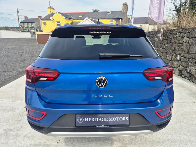 Volkswagen T-Roc TSI Life 1.0 Petrol 5dr 110 HP -Stunning car finished in Ravenna Blue -Immaculate inside and out -High Seating Position for extra comfort! -Loaded with Spec Straight Sale Price €23,995 *Retail price with a trade in is €24,495 All trade ins welcome Deposit Secures Any Car Office 0909 -612917 Declan Mobile 087-0018870 Personalised video available on request, Book Your Viewing, available 7 days a week by appointment only. All vehicles will be sold fully Serviced & Detailed Nationwide Delivery available Finance plans available with flexible deposit/trade in allowance Nationwide Warranty on all Vehicles allowing Peace of Mind for our customers near and far. Contact Declan today to book your Test Drive Central Locking, Electric Windows, Airbag, Privacy Glass, Centre Armrest, Multi-function steering wheel, Roof Rails, Traction Control, Metallic Paint, Parking Sensors, Bluetooth, Isofix, Active Safety Braking / City Brake / Collision Alert, Stop/Start Button, External Devices Connectivity, Cup holders, Remote boot/hatch/rear door release, Stability control