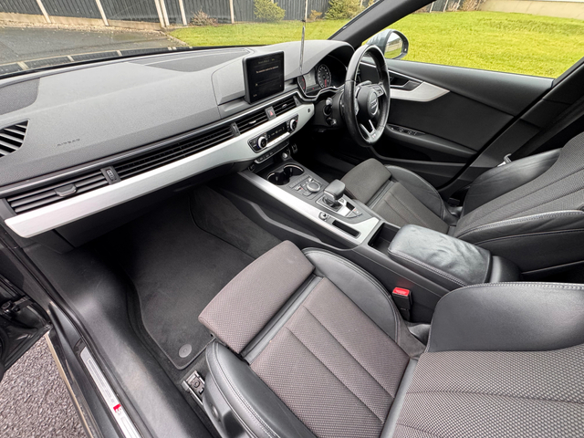 2016 Audi A4 S-line 2.0 Diesel 150 bhp Auto transmission 105k miles Timing belt & water pump replaced @ 90k miles Full service history Heated seats Apple/Android car play Black Edition Styling Fitted with brand new 19 Alloy wheel & tyre package Sale price includes the following Registered on Irish plates to new owners home county 2 years NCT 3 months tax 3 months warranty Full service & health check Full clean history check Trade in accepted Finance options available Nationwide delivery available Call Darren on 0877731442 to arrange a viewing €18950 straight sale price €19950 trade in price Central Locking, CD Player, Electric Windows, Airbag, Cruise Control, Rear Spoiler, Centre Armrest, Multi-function steering wheel, Roof Rails, Satellite Navigation, Traction Control, Metallic Paint, Anti-Theft System, Parking Sensors, Bluetooth, EBD, Isofix, Active Safety Braking / City Brake / Collision Alert, Stop/Start Button, External Devices Connectivity, Cup holders, Remote boot/hatch/rear door release, Stability control