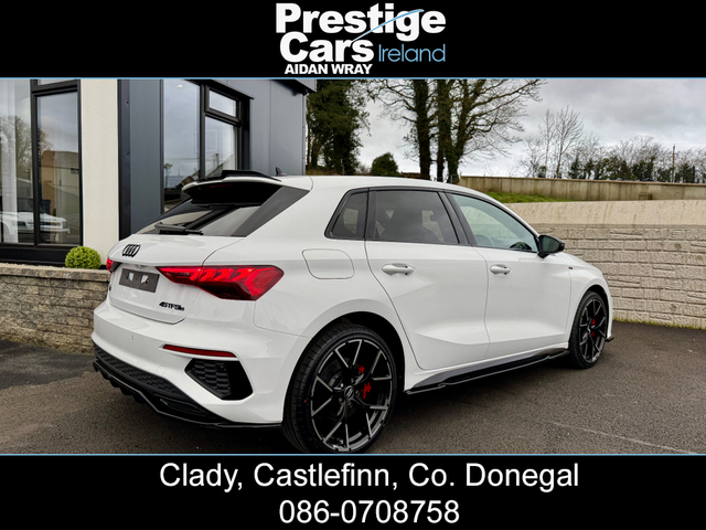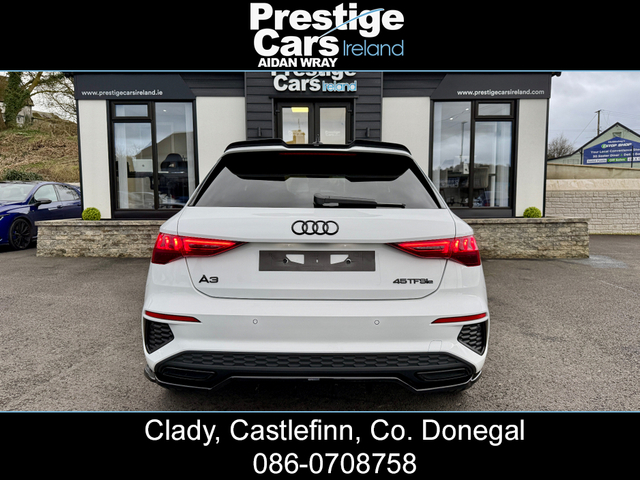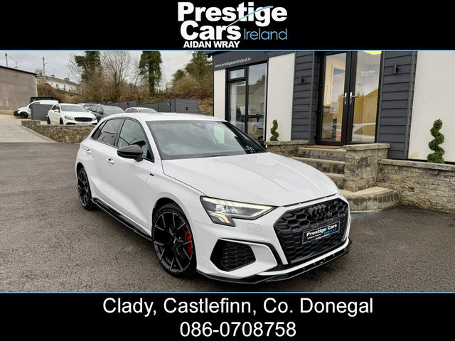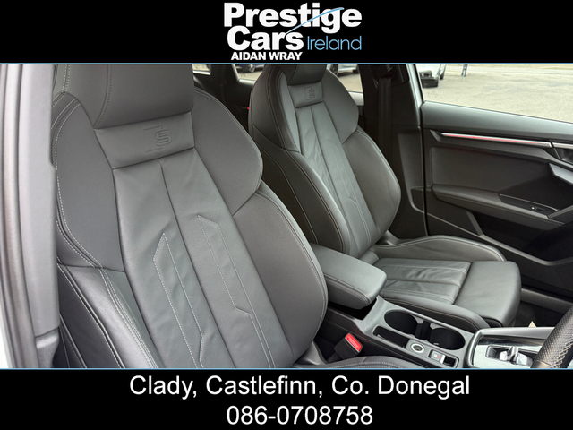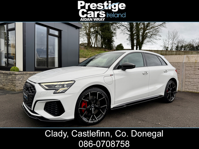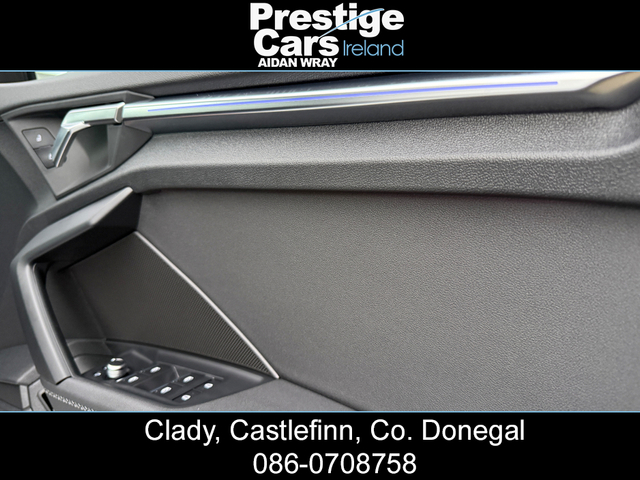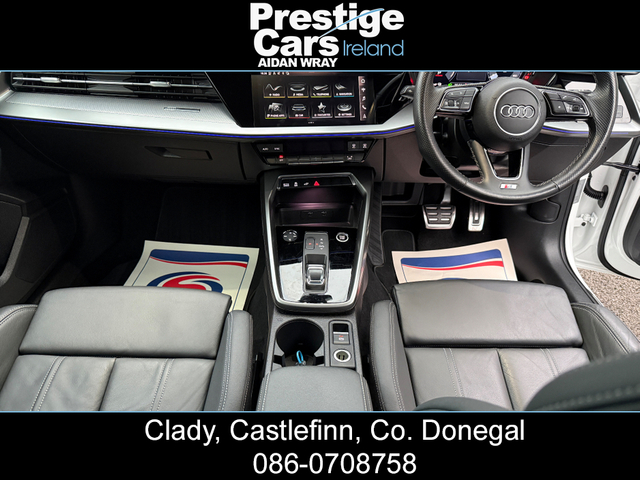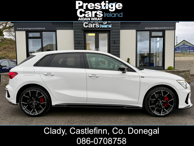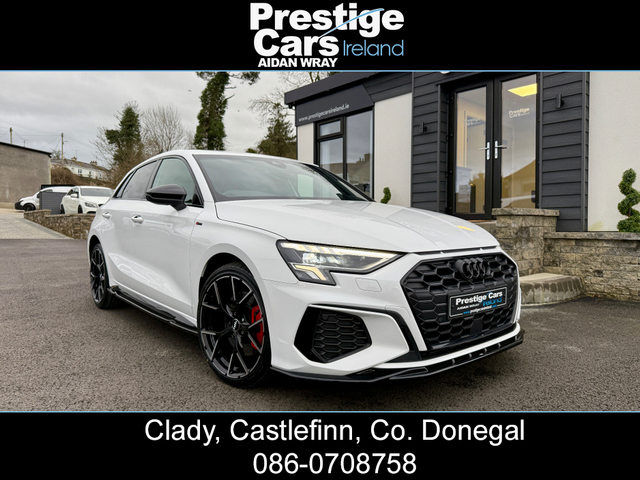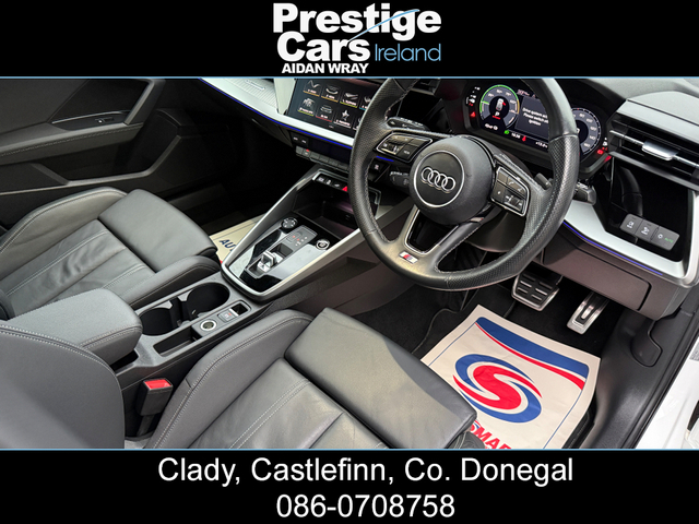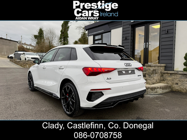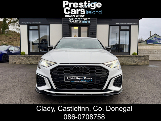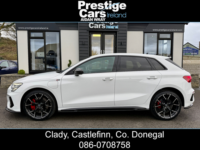 **EURO PRICE €28,900 ON IRISH REGISTRATION, REGISTERED TO YOUR COUNTY WITH NEW NCT** -IRISH ROAD TAX €170 EURO -PRICE FOR NI CUSTOMER ON NI REG 21,995 STG www.prestigecarsireland.ie (FREE DELIVERY ANYWHERE IN IRELAND) *TOP RATE ON EURO GIVEN* **COMPETITION EDITION/BODY KIT/IBIS WHITE/BLACK EDITION/XENON/LED LIGHTS/AMBIENT LIGHTING/LEATHER/VIRTUAL COCKPIT/19" ALLOYS** 2022 (221) AUDI A3 SPORT BACK 1.4 45 TFSI E S-LINE COMPETITION PETROL/ELECTRIC HYBRID, AUTOMATIC, **BLACK EDITION**, ONLY 89,000 MOTORWAY MILES WITH A FULL AUDI MAIN DEALER SERVICE HISTORY, (WARRANTED MILES), 1 COMPANY OWNER FROM NEW, **VIRTUAL COCKPIT**, COMFORT AND SOUND PACKAGE, FULL BLACK LEATHER INTERIOR WITH S-LINE LOGO, HEATED SEATS, BIG TOUCH SCREEN COLOUR DISPLAY SAT-NAV, MULTI FUNCTIONAL WHEEL, ARM RESTS, IPOD/USB CONNECTION, USB CHARGING PORTS, BLUETOOTH, **AMBIENT LIGHTING PACK**, HIGH GLOSS PACKAGE, LED INTERIOR LIGHT PACK, AUDI CONNECT WITH AMAZON ALEXA INTEGRATION, VOICE CONTROL SYSTEM, APPLE CAR PLAY, AUDI DRIVE SELECT OPTIONS, AUDI PRE SENSE, AUTO HOLD, COMFORT DYNAMIC SUSPENSION, DAB DIGITAL RADIO, FINISHED IN STUNNING IBIS WHITE, **BODY KIT INCLUDES GLOSS BLACK FRONT SPLITTER, SIDE SKIRTS, REAR DEFUSER, LIP SPOILER**, AUDI PARKING SYSTEM PLUS WITH FRONT AND REAR PARK SENSORS, XENON/LED FRONT AND REAR LIGHTS, HIGH BEAM ASSIST, DYNAMIC REAR INDICATORS, TURNING LIGHTS, FACTORY REAR PRIVACY GLASS, ELECTRIC FOLDING AUTO DIMMING/ADJUSTABLE/HEATED DOOR MIRRORS WITH KERB VIEW FUNCTION FOR PASSENGER SIDE, DAYTIME LED RUNNING LIGHTS, BRAND NEW 19" ALLOY WHEEL PACKAGE,OPTIONAL EXTRA 850 STG, AUTOMATIC GEARBOX WITH STEERING WHEEL PADDLES, ALL PAPERWORK PRESENT, MINT CONDITION INSIDE AND OUT, ANY INSPECTION WELCOME. EXCELLENT VALUE WITH HIGH SPEC. STUNNING EXAMPLE *(CAR IS FITTED WITH A BRAND NEW 19" ALLOY WHEEL PACKAGE,OPTIONAL EXTRA 850 STG)* **ROI/NI/UK TRADE IN'S ACCEPTED @ TRADE PRICES** -CALL AIDAN ON 00447856438001 OR 0860708758 ***EXCELLENT FINANCE PACKAGES AVAILABLE TO NI/UK/ROI CUSTOMERS*** CREDIT & DEBIT CARDS ACCEPTED PRICE INCLUDES 3 MONTHS WARRANTY FULLY VALETED/DETAILED *ALL OUR STOCK IS PUT OUT TO A VERY HIGH STANDARD* ALL CARS COME FULLY SERVICED WITH NEW TIMING BELT & WATER PUMP KIT FITTED INCLUDING FULL CHECKOVER HPI PRINT OUT VIEWING AVAILABLE 7 DAYS A WEEK, OPEN LATE EVERY NIGHT PRESTIGE CARS IRELAND VIEW OUR FACEBOOK PAGE "PRESTIGE CARS IRELAND" 3 Month Warranty, Air Conditioning, Central Locking, Electric Windows, Airbag, Cruise Control, Rear Spoiler, Privacy Glass, Centre Armrest, Multi-function steering wheel, Satellite Navigation, Traction Control, Anti-Theft System, Parking Sensors, Bluetooth, EBD, Isofix, Apple Car Play, Android Auto, Active Safety Braking / City Brake / Collision Alert, Stop/Start Button, External Devices Connectivity, Cup holders, Remote boot/hatch/rear door release, Stability control