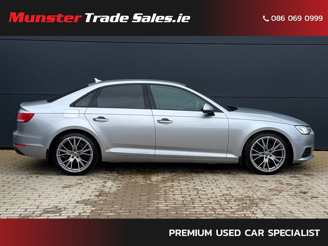 2017 Audi A4 2.0 TDI 150 BHP Ultra Floret Silver Metallic | Black Edition Styling | 19” S Line Black Alloys Available now at Munster Trade Sales – Limerick A beautifully presented Audi A4 finished in Floret Silver Metallic with contrasting Atlas Beige interior. This example benefits from upgraded Black Edition styling and sits on 19-inch S Line Black Edition alloy wheels with brand new tyres, Powered by the efficient 2.0 TDI (110kW) paired with a 6-speed manual gearbox, delivering excellent fuel economy while maintaining strong everyday performance. Key Features – Black Edition Styling Package – 19” S Line Black Edition Alloy Wheels (New Tyres) – Sports Suspension – Xenon Plus Headlights with LED Daytime Running Lights – Rear Parking Sensors – Cruise Control – Automatic Air Conditioning – High-Gloss Styling Package – 17” Original Wheels also available if required Interior & Comfort – Leather / Leatherette Combination Interior – Atlas Beige Cabin – 4-Way Lumbar Support – Folding Rear Seats – Front Centre Armrest – Aluminium Ellipse Interior Inlays – Multifunction Leather Steering Wheel – Driver Information System with Colour Display Technology – MMI Navigation – Audi Sound System – Bluetooth Connectivity – AUX & USB Interface – Light Package – Tyre Pressure Monitoring System Condition & Preparation This vehicle has been fully inspected. It has just received a full vehicle service and comprehensive inspection, including timing belt and water pump replacement for complete peace of mind. Professionally prepared and presented in excellent condition. Munster Trade Sales – Limerick Eircode: V94 RKTO www.munstertradesales.ie Opening Hours: Mon–Fri: 9:00am – 8:00pm Saturday: 9:00am – 6:00pm Enquiries welcome. Finance options available. • Full vehicle Service & inspection • Professionally valeted & Detailed • Car History Checked • Finance Available