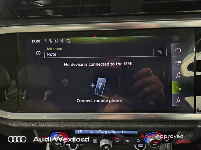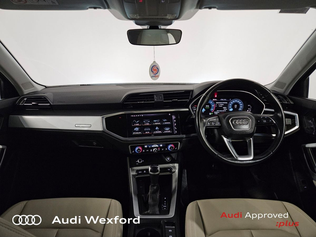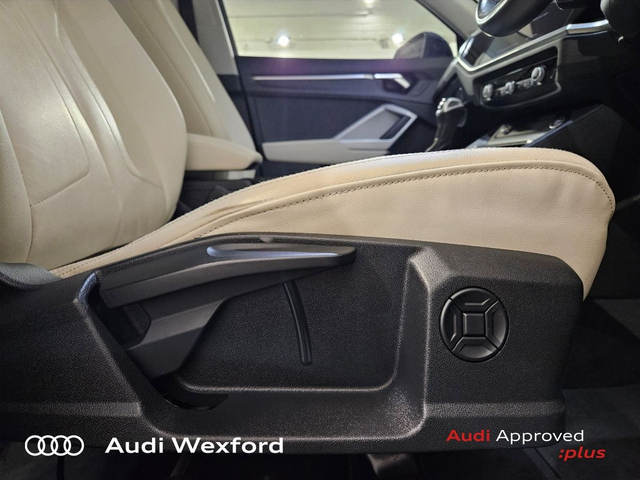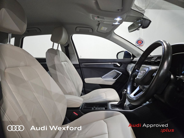 Audi Q3 35TDI 150 SE ST €407 p/m • Bluetooth Interface • Hands Free Kit • Mobile Device Interface (Media-In) • Mobile Phone Preparation-Bluetooth • Audi Drive Select • Audi Stop/Start • Auto Handbrake • Cruise Control • Engine Recuperation • Power Assisted Steering • Alloy Wheels • Metallic Paint • Space Saver Spare Wheel • Armrest • Button Start-Stop • Climate Control • Electric Mirrors • Electric Windows • Front/Rear Floor Mats • Multi-Function Steering Wheel • Onboard Computer • Upholstery and Seats • Heated Seats • Leather Interior • Leather Steering Wheel • Lumbar Support • ABS • Auto Lights and Wipers • Front and Rear Park Assist • High Beam Assist • Hill Hold Assist • ISO Fix • LED Headlights • Light and Rain Sensor • Multiple Airbags • Reverse Camera • USB • Speed Limiter • Audi Connect • Audi Smartphone Interface • Keyless Go • Reverse Camera • USB charging ports