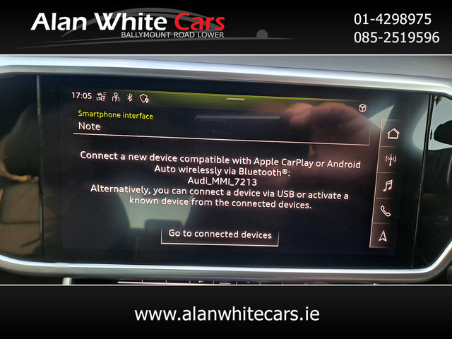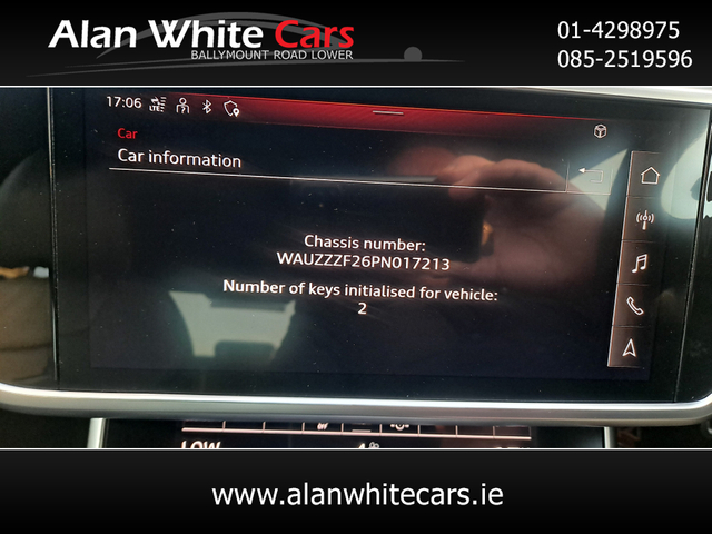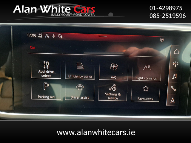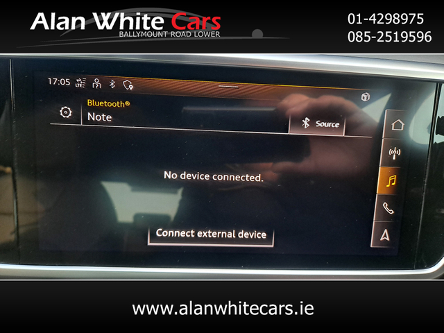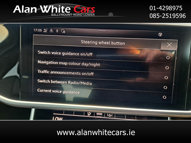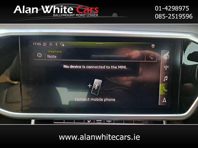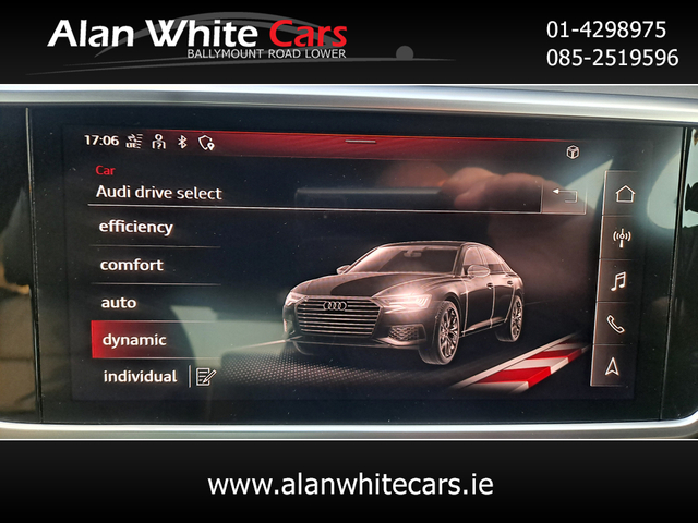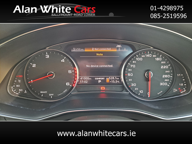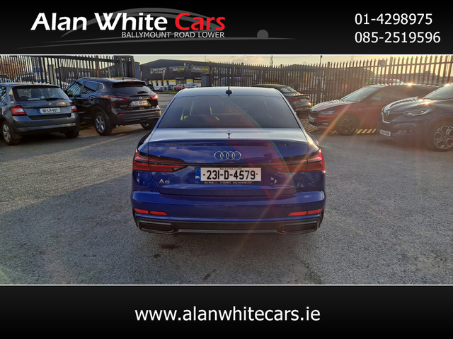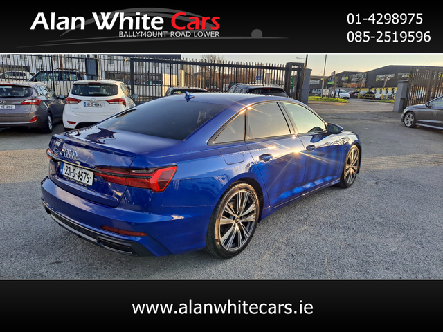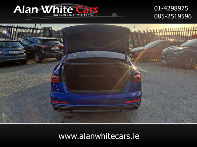 VIEWING BY APPOINTMENT Please phone ahead for viewing thanks. 0852519595 JUST ARRIVED!!! EXCEPTIONALLY LOW MILEAGE STUNNING A6 S-LINE BLACK EDTION IN SEPANG BLUE !! 20INCH ALLOYS FLAT BOTTOM STEERING WHEEL PLUS A HOST OF EXTRAS!! IRISH CAR AND ONLY 2 PRIVATE OWNERS FROM NEW WITH A FULL AUDI SOUTH MAIN DELAER SERVICE HISTORY LAST SERVICED IN AUDI NOV 25 !! THIS CAR COMES SERVICED WITH A FULL MULTI-POINT CHECK / FULL VALET WITH WARRANTY AND NEW NCT IF REQUIRED!! THIS CAR HAS A FULL CLEAN CAR HISTORY AND FINANCE REPORT (A COPY AVAILABLE ON REQUEST) TO ENSURE PEACE OF MIND FOR THE CUSTOMER AND TO INSTIL CONFIDENCE WHEN PURCHASING A PRE OWNED VEHICLE. All cars purchased are supplied with a full service, full valet and warranty. For more information or to arrange a viewing/test drive please do not hesitate to contact sales on 01-4298975 or 085-2519596 or email [email protected] You can also view stock and opening hours on our website www.alanwhitecars.ie Full Service History, 12 Month Warranty, Trade in accepted, Air Conditioning, Central Locking, Immaculate condition, Electric Windows, Airbag, Alarm, Alloy Wheels, Cruise Control, Electric Mirrors, Fog Lamps, Immobiliser, Half Leather, Privacy Glass, Heated Seats, Automatic Wipers, Automatic Lights, Centre Armrest, Luggage Cover, Multi-function steering wheel, Climate Control, Satellite Navigation, Traction Control, Metallic Paint, Multiple Air Bags, Xenon Lights, Side Impact Protection, Anti-Theft System, Parking Sensors, Bluetooth, Remote Central Locking, EBD, Electronic handbrake, Folding rear seats, Six speed transmission, Isofix, Hill holder, History Checked, Finance Checked, Apple Car Play, Android Auto, Keyless Entry, Heated Front Seats, Reversing Camera, Front Parking Sensors, Wireless Smartphone Control, Autonomous Drive / Pilot Assist, Active Safety Braking / City Brake / Collision Alert, Adaptive Cruise Control, Automatic Park Assist, Stop/Start Button, Touch Screen Media Control, Drive Mode Selector, Dual Zone Climate Control, 2 Keys, Main Dealer Service History, External Devices Connectivity, Cup holders, Remote boot/hatch/rear door release, Stability control