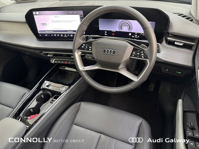 Powerful, efficient, and built with a solid presence, the 2026 Audi Q3 e-hybrid in Mythos Black combines everyday practicality with electrified performance for Irish roads. Exterior: • Mythos Black metallic finish for a sleek, premium look • Chrome roof rails for added practicality and versatility • Bold black grille enhancing the sporty, modern appearance • LED headlights and rear lights for clear visibility Interior&Tech: • Black leather seats offering comfort and a refined cabin feel • Ambient interior lighting creating a modern, relaxed atmosphere • Audi Virtual Cockpit with fully digital driver display • MMI infotainment system with touchscreen interface • Built-in navigation tailored for Irish and UK roads • Apple CarPlay & Android Auto connectivity • Dual-zone climate control for personalised comfort • Rear parking sensors and reversing camera • Cruise control and lane assist for safer motorway driving Performance&Charge: • 2026 plug-in hybrid system delivering approx. 270 hp for responsive, smooth performance • S tronic automatic transmission for effortless gear changes • Multiple drive modes including EV, hybrid, and battery hold • All-electric range of up to approx. 90–100 km (WLTP) ideal for daily commutes • Low fuel consumption combining petrol and electric power • Full charge in approx. 2.5–3 hours with a home AC wallbox • Regenerative braking to enhance efficiency Stylish, efficient, and ready for any journey—the 2026 Audi Q3 e-hybrid delivers practicality and performance in perfect balance.