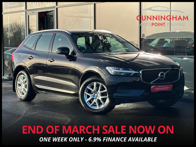 *March Sale - Price Reductions until end of March only - Reserve online - Sale prices are final* 2018 (182D) Volvo XC60 D4 Momentum Auto in Onyx Black with Black Leather Interior. A very genuine example with full service history and coming with several factory optional extras. Features include Sensus Navigation with European Mapping, Traffic Information and Lifetime Annual Map Updates - Front and Rear Park Assist with Rear Park Assist Camera - Driver Alert Control with Lane Keeping Aid, Run Off Road Mitigation, Oncoming Lane Mitigation and Road Sign Information - ISOFIX Attachment (Outer Rear Seats) - LED Headlights with Active High Beam Incorporating Day Running Lights - Sensus Connect with High Performance Sound with 8 Speakers - Cruise Control - Power Operated Tailgate - Heated Front Seats - 18-inch 5-Y Spoke Silver Alloy Wheels - Roof Rails - Integrated Silver - Tempa Spare Wheel - Anti-theft Alarm including Immobiliser, Volume Sensor and Level Sensor. This car can be reserved on our website (google Cunningham Autopoint) for 48 hours allowing to time to travel and see the car with the assurance that the car will not be sold in the interim. Reservation fee is refundable if no deal is concluded or if you do not manage to come within the 48-hours. This car will be fully serviced prior to sale and comes complete with a 12 months / 20,000km mechanical warranty with 12 Months AA Premium Assistance. To discuss this car further please call into our showroom, phone us on 091 383000 or send us an online enquiry - You can also reserve this car for 48 hours on our website - Due to fast stock turnaround we recommend phoning in advance of travelling to check if the car of your choice is available - We are an independently owned and operated dealership and our highly experienced team have over 100 years of combined motor industry experience.