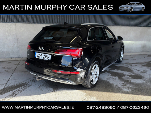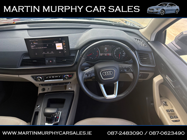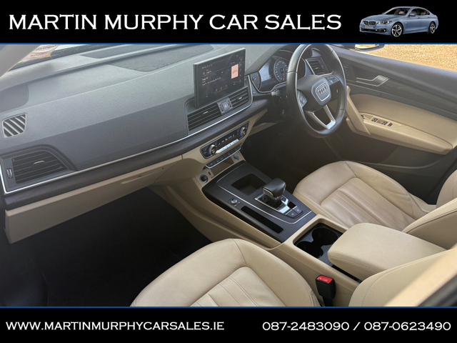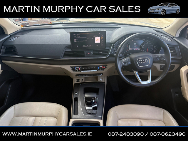 2022 AUDI Q5 2.0 TDI 163 BHP AUTO Finished in Mythos black metallic with beige leather interior Irish supplied jeep from new with full Audi service record - Finance available - Trade ins accepted - Dealer warranty - NCT tested until 04/2028 - Annual road tax €270 - Xenon headlights - Reverse camera - Heated seats - Push button start - Electric tailgate - Paddle shift - Alloys MARTIN MURPHY CAR SALES, KILKEARY, NORWOOD NENAGH, CO TIPPERARY Central Locking, Electric Windows, Airbag, Rear Spoiler, Centre Armrest, Multi-function steering wheel, Roof Rails, Satellite Navigation, Traction Control, Metallic Paint, Parking Sensors, Bluetooth, EBD, Isofix, Active Safety Braking / City Brake / Collision Alert, Stop/Start Button, External Devices Connectivity, Cup holders, Remote boot/hatch/rear door release, Stability control