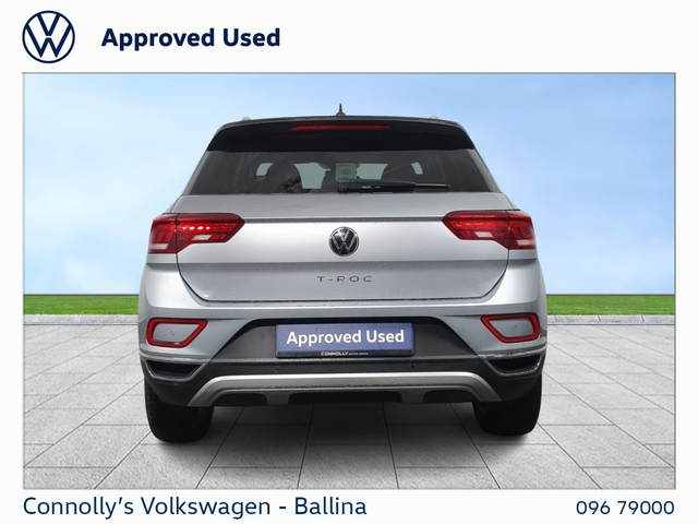 DESCRIPTION: Now available at Connolly’s VW Ballina: The Volkswagen T-Roc is a stylish and versatile compact SUV that combines sporty design with everyday practicality. Offering a comfortable and composed drive, efficient performance, and a slightly elevated driving position, it’s well suited to both urban and motorway journeys. Inside, the T-Roc features a modern, well-built cabin with smart technology and ample space, while maintaining Volkswagen’s strong reputation for quality and reliability, making it a great all-round choice for a wide range of drivers. KEY FEATURES • Digital cockpit display, putting navigation and driving info directly in your line of sight • Apple CarPlay & Android Auto • Reverse parking sensors, Making Parking Effortless • Alloy wheels • Cruise control, giving comfortable motorway driving • Climate Control DEALERSHIP BENEFITS Buying from Connolly’s Volkswagen Ballina gives you peace of mind with: Fully inspected vehicles Minimum 12-month warranty Flexible finance packages available Trade ins welcome Nationwide Delivery Available Call our sales team to arrange a test drive or a personalised walkaround video.
