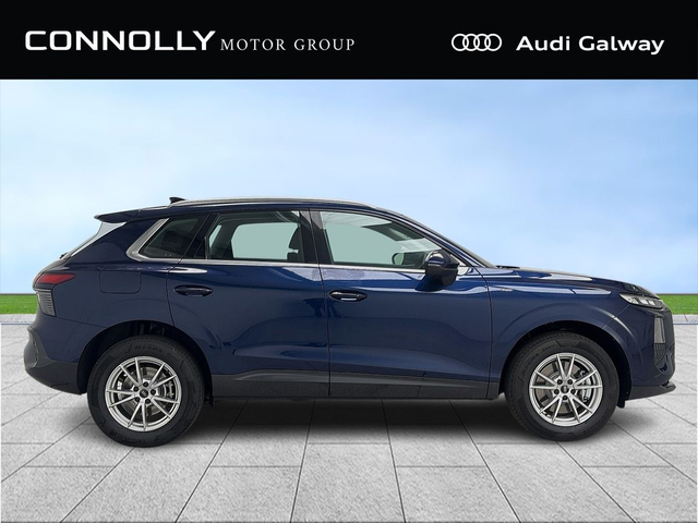 Discover a smarter way to drive with the 2026 Audi Q3 e-hybrid SE S tronic in Navarra Blue—combining everyday practicality with efficient electrified performance. Exterior: • Navarra Blue metallic finish with a clean, understated look • Compact SUV design ideal for city driving and tight parking • LED headlights and rear lights for improved visibility • Roof rails adding extra practicality for bikes, luggage, or outdoor gear Interior: • Durable cloth seats designed for everyday comfort • Spacious cabin with good legroom front and rear • Audi Virtual Cockpit with clear digital driver display • Easy-to-use MMI infotainment system with touchscreen • Built-in navigation • Apple CarPlay & Android Auto • Dual-zone climate control for added comfort • Rear parking sensors and reversing camera for easier parking • Cruise control and lane assist for motorway driving • Practical boot space suitable for daily use or family needs Performance&Charge: • Plug-in hybrid system producing approx. 270 hp • Smooth S tronic automatic gearbox • Electric range of up to approx. 90–100 km (WLTP)—ideal for short daily commutes • Low fuel consumption when combining electric and petrol driving • Full charge in approx. 2.5–3 hours using a home wallbox • Regenerative braking to improve efficiency • Suitable for both short trips and longer motorway journeys Efficient, comfortable, and ready for everyday life—the Audi Q3 e-hybrid is a smart choice for Irish roads.