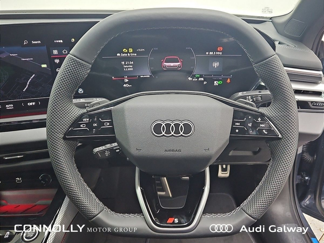 Presenting the Audi A5 Sedan Edition One S line TDI 150 kW S tronic – a limited-edition blend of sporty design, performance, and exclusive features. Finished in Horizon Blue with a sleek Black interior and Black exterior package accents. Exterior: • Horizon Blue paintwork giving the car a bold and premium presence. • S line exterior styling with Black Pack for a dynamic and aggressive look. • Audi Sport 5 twin-spoke alloy wheels in black metallic (8.5J x 19) with 245/40 R19 tyres for a sporty stance and precise handling. • Red brake calipers highlighting the Edition One’s performance character. • LED headlights and rear lights delivering excellent visibility and signature Audi style. • Body-coloured mirrors and sculpted body lines for a clean, aerodynamic profile. • Special control accents enhancing the car’s exclusive limited-edition appeal. Interior: • Black interior creating a sporty, high-quality cabin atmosphere. • S line sport seats for athletic support and comfort. • Ambient lighting giving the cabin a modern and welcoming glow. • Multi-function steering wheel for easy access to key features while driving. • Wireless phone charger for cable-free convenience. • Audi Virtual Cockpit & high-resolution digital display for a clear, customisable driving experience. • High-resolution MMI touchscreen for media, navigation, and vehicle controls. • Audi Smartphone Interface for seamless Apple CarPlay and Android Auto connectivity. • Audi sound system delivering immersive audio throughout the cabin. Performance: • 2.0L TDI engine (150 kW / 204 PS) delivering smooth, efficient performance. • S tronic automatic transmission for responsive and seamless gear changes. • 0–100 km/h in approx. 7.3 seconds for confident acceleration. • Refined suspension and S line handling offering a balanced mix of sportiness and comfort. • quattro all-wheel drive providing traction and stability in all conditions. Experience the exclusivity and thrill of the Audi A5 Sedan Edition One S line TDI 150 kW S tronic – a limited-edition drive designed to turn every journey into a statement.
