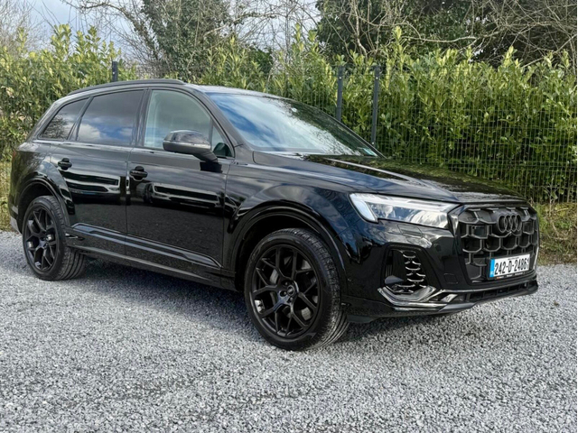 2024 (242) Audi Q7 Black Edition 3.0 TFSI Plug-In Hybrid Black Edition Styling – sleek, aggressive and finished exactly how a Q7 should be. Key Features Include: Matrix LED headlights Full black leather interior Heated electric seats Heads-Up Display Apple CarPlay & Android Auto Air Suspension (comfort & dynamic drive modes) Full Service History Only 27,000kms This is a high-spec, low-mileage example that won’t hang around. Ideal for someone wanting top-tier comfort with serious road presence. Get in touch today to arrange a viewing or test drive. Zero deposit finance options available and free nationwide delivery. Trade ins welcome @ €85,950 Contact: Andrew 0872878872 Jamie 0866961860 Air conditioning, Climate control, Dual zone climate control, Armrest, Keyless entry, Electrically adjustable seats, Electric boot, Electric side mirrors, Electric windows, Electric handbrake, Heated seats, Lumbar support, Multi-function steering wheel, Rain sensor, Split rear seats, Gear shift paddles, Android Auto, Apple CarPlay, Bluetooth, 12v power outlet, Radio, Touch screen display, USB connection (front), Wifi, Cruise control, Hill hold assist, Navigation system, Parking camera, Front parking sensors, Rear parking sensors, Remote boot release, Roof rails, Speed limiter, Start-stop system, Traffic sign recognition, Voice control, Parking assistance, Digital instrument panel, Alloy wheels, Leather interior, Leather steering wheel, Spoiler, Ambient lighting, Auto lights (dusk sensor), Daytime running lights, Fog lights, LED headlights, ABS, Anti collision system, Alarm system, Emergency brake assist, Central locking, Remote central locking, Driver-side airbag, Immobilizer, Isofix, Lane departure warning, Tyre pressure monitor, Passenger-side airbag, Seat belt warning, Side airbag, Stability control, Traction control, Emergency tyre repair kit, Air suspension, 4WD