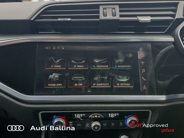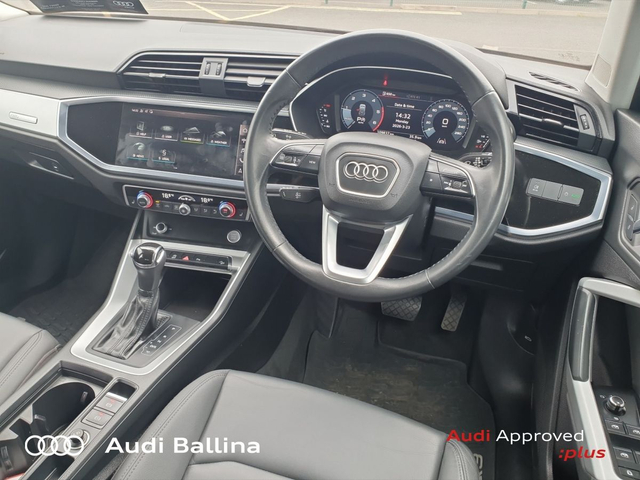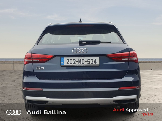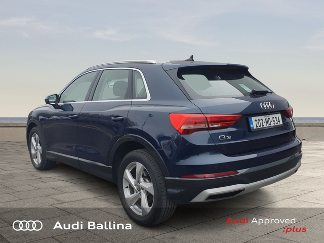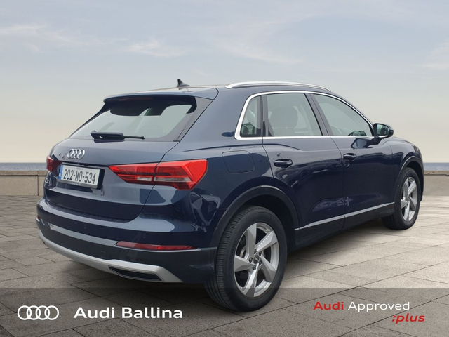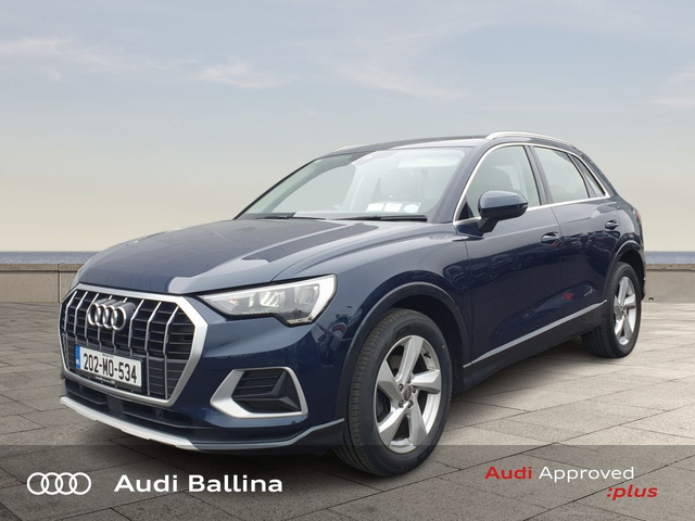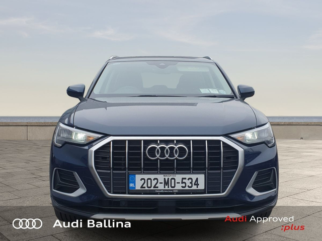 Now available at Connollys Audi Ballina, this stunning 2020 Audi Q3 is finished in COSMO BLUE METALLIC with a luxurious FULL BLACK interior. Stylish, refined and packed with the latest technology, the Audi Q3 SE delivers the perfect combination of performance, comfort and everyday practicality. This low-mileage example has been carefully inspected and prepared by our factory-trained technicians, offering excellent efficiency, smooth driving dynamics and premium interior quality expected from an Audi. This vehicle is supplied through the Audi Approved :plus Programme, providing added reassurance and complete peace of mind for its next owner. If you’re looking for a premium, well-equipped and beautifully presented vehicle, this Audi is an excellent choice. Buying from Connolly’s Audi Ballina gives you peace of mind with: • Fully inspected vehicles • Flexible finance packages available • Trade-ins welcome • Nationwide Delivery Available Available now at Connollys Audi Ballina. Contact our sales team today to arrange a test drive or personalised video tour. • Bluetooth Interface • DAB Digital Radio Module • Touchscreen Stereo • Audi Stop/Start • Cruise Control • Chrome Exterior Package • Metallic Paint • Space Saver Spare Wheel • Button Start-Stop • Heated Seats • Leather Steering Wheel • Auto Lights and Wipers • Child Locks • High Beam Assist • Reverse Camera • Remote Central Locking • USB • Front and Rear Park Sensors • Voice control • Speed Limiter • Apple Carplay/Android Auto • Audi Connect • Audi Smartphone Interface • Audi Virtual Cockpit • Reverse Camera