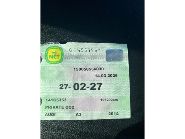 This A3 is in fantastic condition and is very high spec. Comes with the Audi rubber mats, half leather interior, leather stitched multi function steering wheel, electric windows, electric seats, electric mirrors, large boot space, arm rest, cup holders, very smooth automatic gear box, pop up audio screen, touch screen audio controls, really nice open back sunroof, 2 keys, alloy wheels, fog lamps , new Bridgestone tyres, new NCT, serviced and valeted. Central Locking, Electric Windows, Airbag, Cruise Control, Fog Lamps, Centre Armrest, Multi-function steering wheel, Traction Control, Metallic Paint, Parking Sensors, Bluetooth, EBD, Isofix, Active Safety Braking / City Brake / Collision Alert, Stop/Start Button, External Devices Connectivity, Cup holders, Remote boot/hatch/rear door release, Stability control